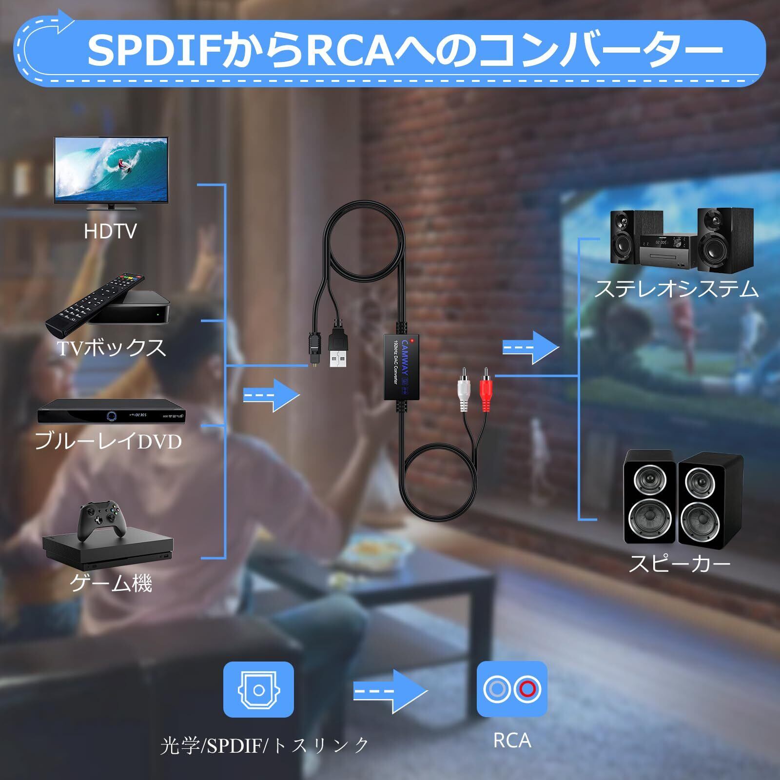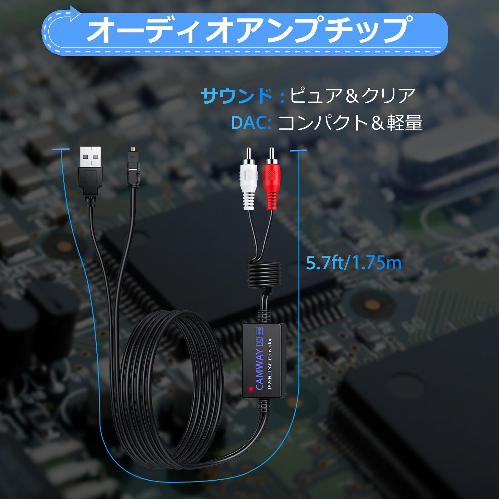 CAMWAY 192kHzデジタルアナログ音声変換器 RCA オスケーブル付き 光デジタル RCA 変換 192kHz DAC コンバータ 1.75 m SPDIF to RCA デジタル - アナログ オーディオ コンバーター Toslink to RCA オーディオ アダプター