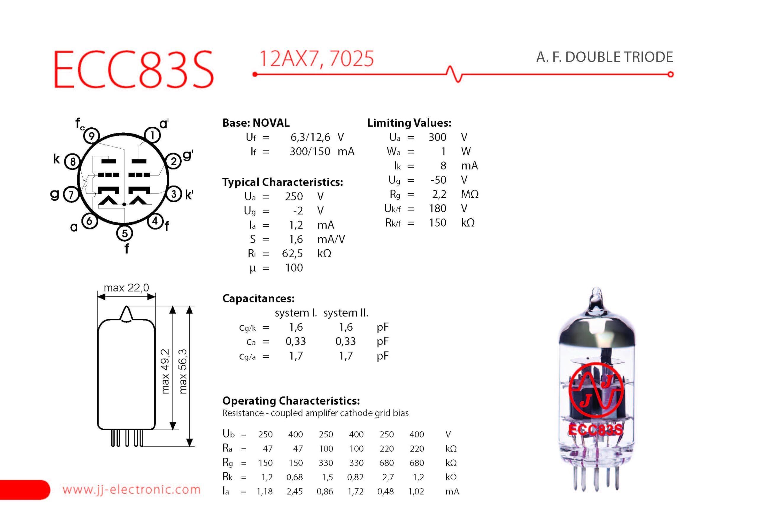 JJ 真空管 ECC83S ミニチュア/mT 双3極管 TJJECC83S