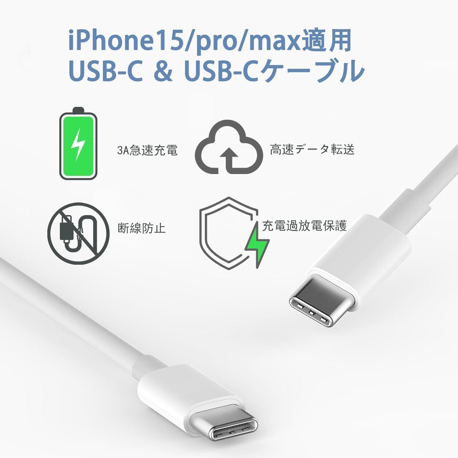 【iPhone/16/15 急速充電器】当社のUSB-C充電器はPower Delivery3.0の充電技術を採用して、純正の充電アダプター3倍早く急速充電できます。テスト済み:13 へ僅か30分で60%までに充電できます。Quick Charge 4.0/3.0/2.0急速充電と互換性があります。「ご注意」本製品はiPhone16/15用USB-C&USB-C ケーブルとのセットです。
