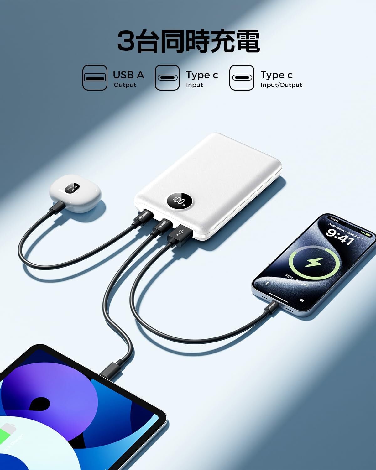モバイルバッテリー 大容量 20000mAh 3台同時充電 Type-C入出力兼用 スマホ 充電器 LCD残量表示 ストラップ付き 持ち運び 携帯充電器 PSE認証済 iOS/Android各種他対応 地震/停電対策 アウトドア/旅行/出張/災害/緊急用 防災グッズ