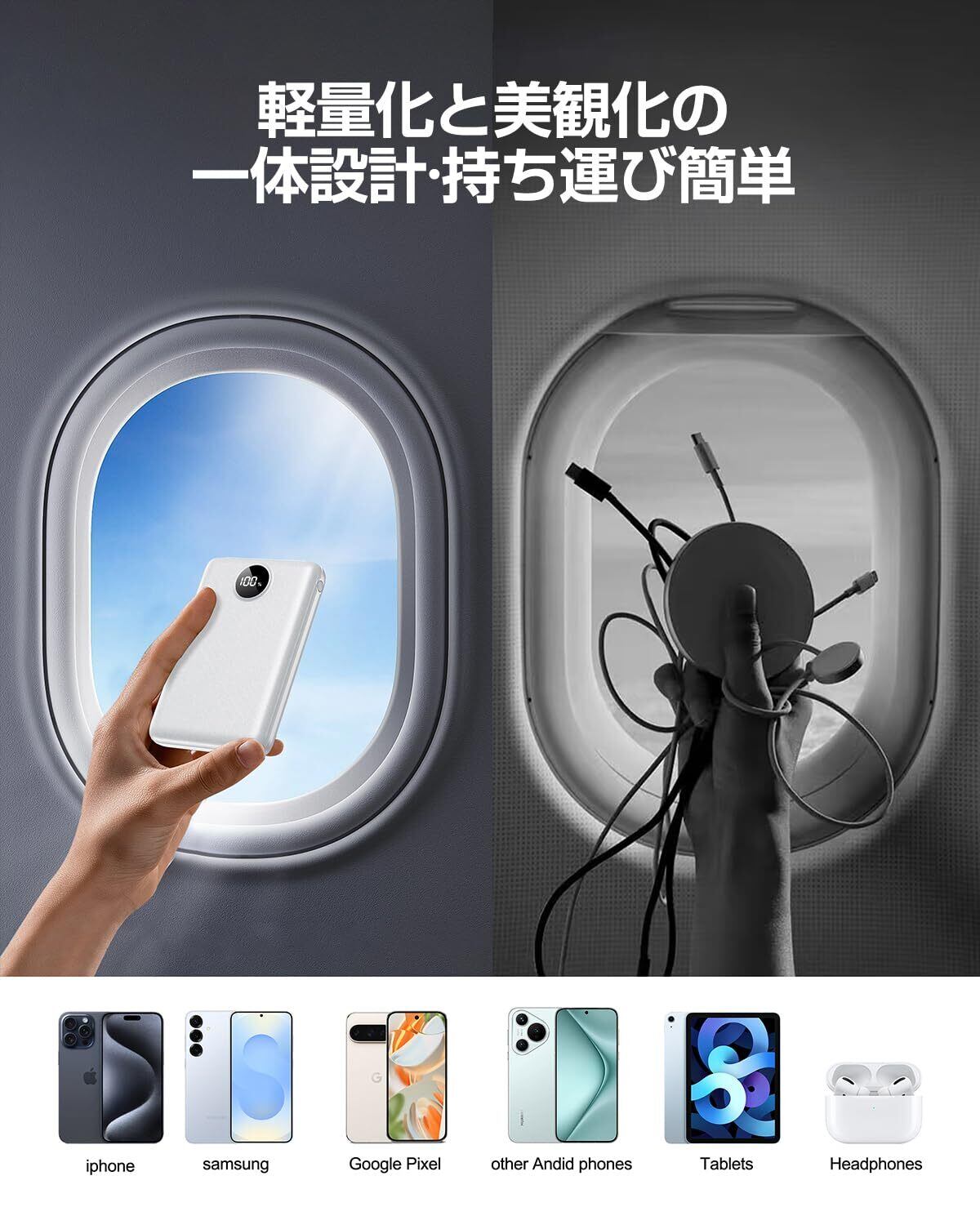 【20000mAh大容量モバイルバッテリー 】軽量20000mAhモバイルバッテリー新登場!外出先/旅行でスマートフォンやタブレットなどの機器を安心して使いたい方にとって、モバイルバッテリーは必需品です。小体積で出張や旅行などの短期外出だけでなく、緊急事態時に非常用電源としても持ち運びに便利です。