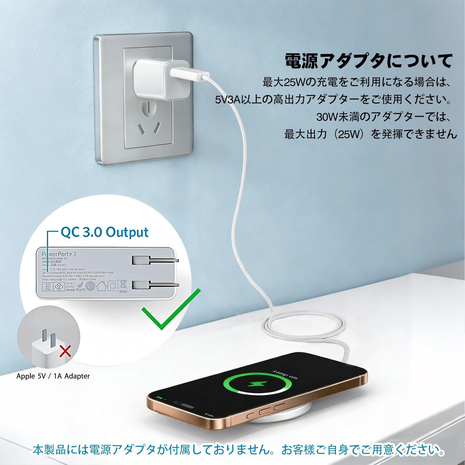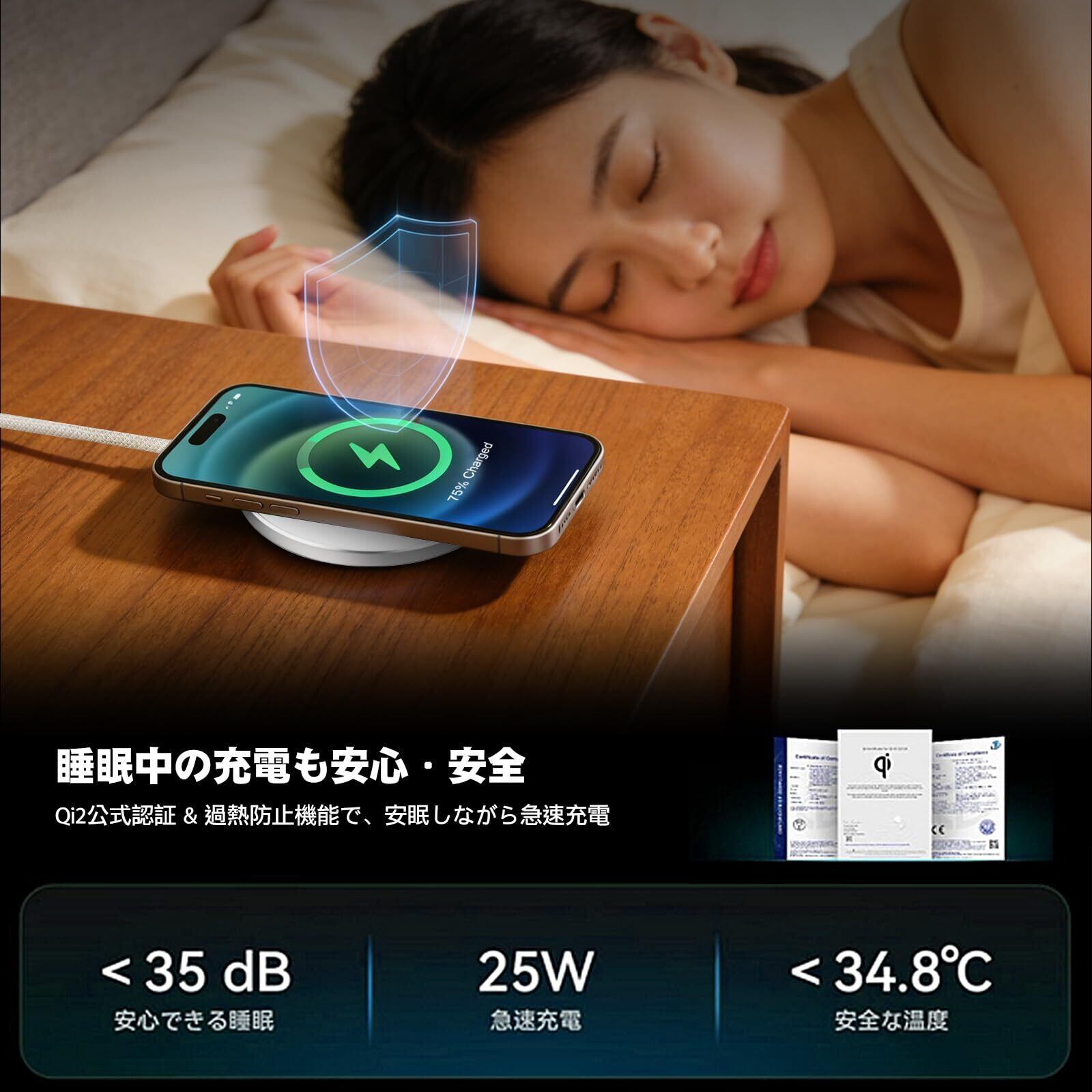 FEEKI Mag Safe充電器 25W Qi2認証 マグネット式 ワイヤレス充電器 急速充電 対応iPhone17/16シリーズ(iOS 26バージョン以降) 超薄軽量 過熱保護 短絡保護機能付き 対応 iPhone15/14/13/12シリーズ&Androidスマートフォン&AirPods対応 Type-C接続 旅行・自宅・オフィス用 ホワイト