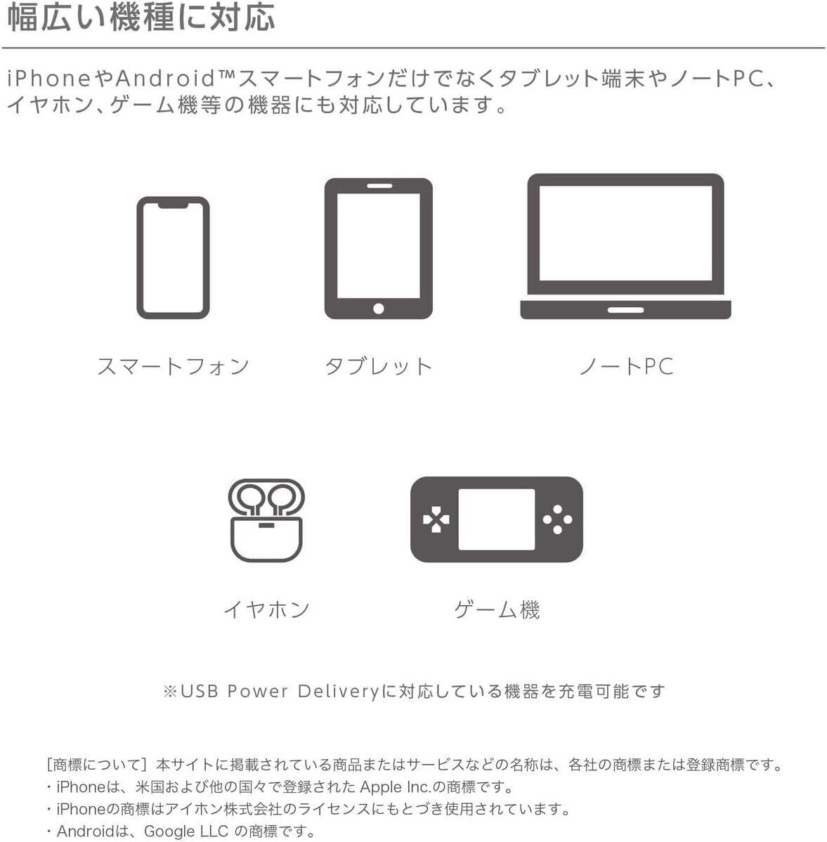 ■充電性能:出力45Wで、スマートフォンやノートPCを急速充電できます。特にスマートフォンを30分で約50%以上充電可能です。※この数値は、2025年4月時点でのiPhone16を0%から充電した場合に基づいています。