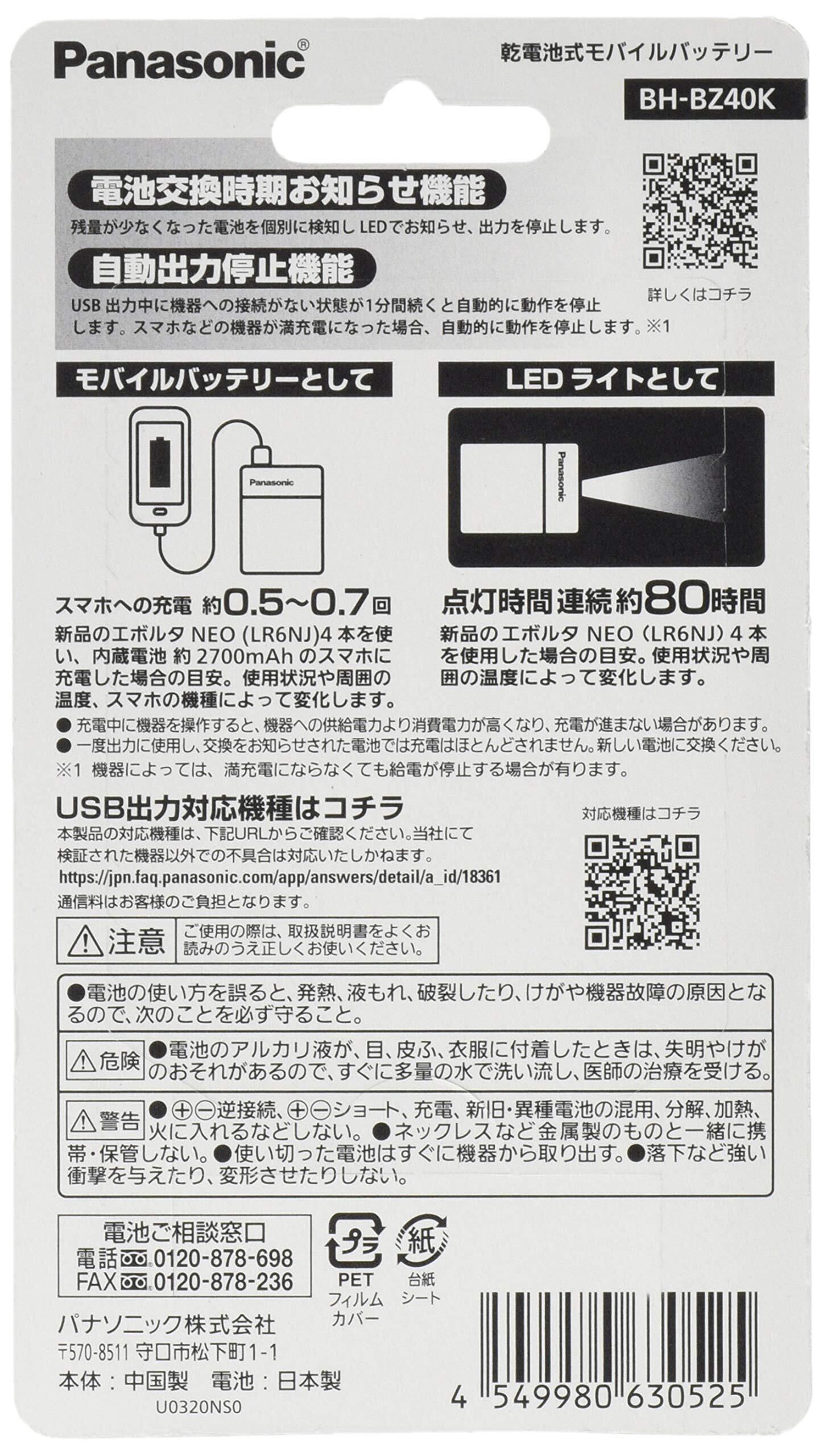 パナソニック LEDライト搭載 乾電池式モバイルバッテリー BH-BZ40K