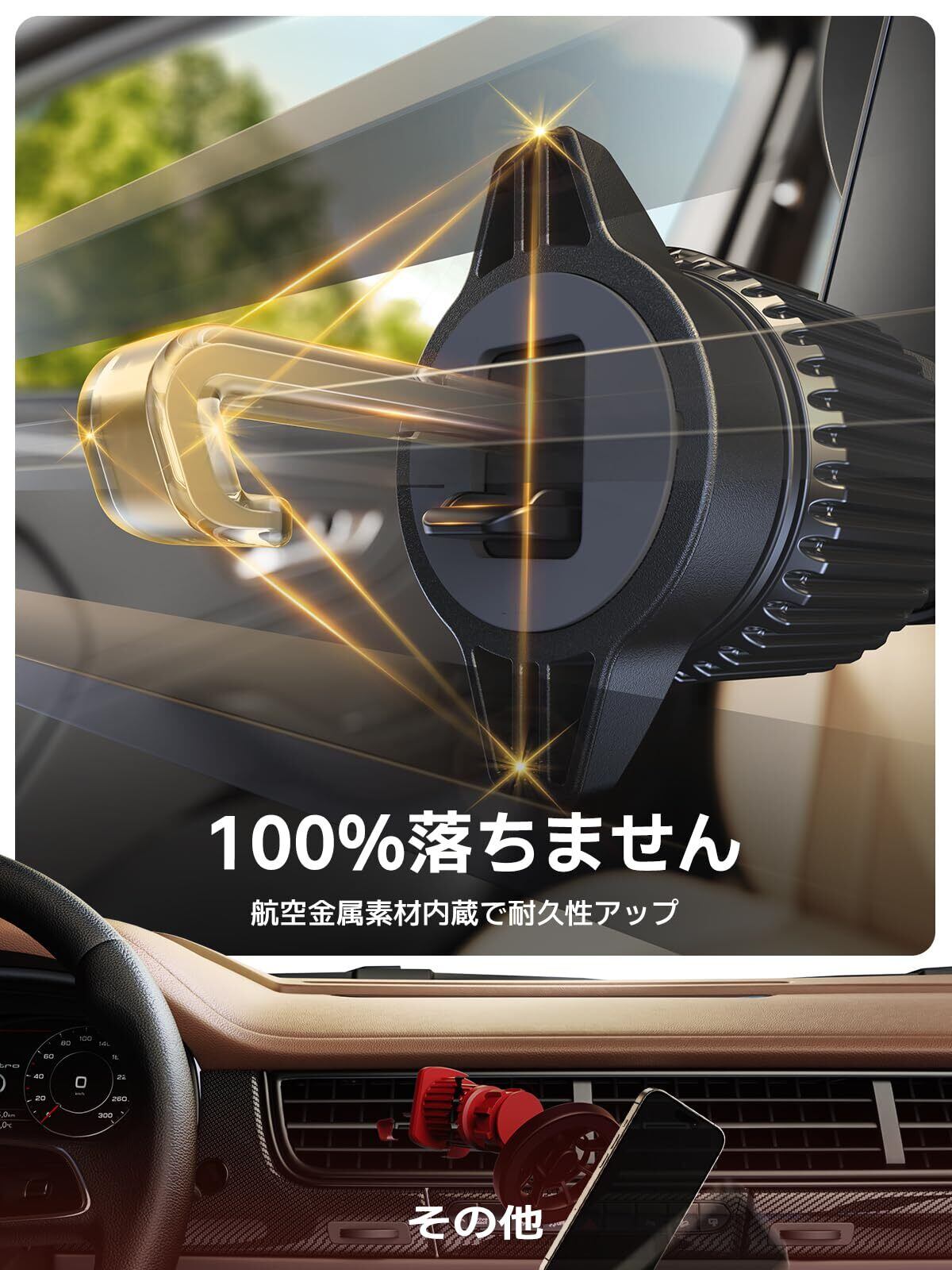 【0.1秒瞬間吸着·取り付け簡単·手を自由に】従来品の車載ホルダーは、さまざまな取り付け手順が必要で、時間の無駄、この問題点を踏まえて、マグネット式のスマホ 車用 ホルダーを開発しました。本体にスマホを置くだけで僅か片手で0.1秒で取り付け可能。マグセーフ 車載はMagsafe機能を搭載したのiPhone Air 17/16/15 /14/13/12シリーズ:16/16Pro/16Plus/16Pro Max/15/15Pro/15 Plus/15Pro Max/14/14 Pro/14 Plus/14 Pro Max/13 Pro max/13 Pro/13、13 Mini/12 Pro Max/12 Pro/12とMagSafeケースや、磁気のあるスマホケースを直接に装着可能で、着脱の手間が省けて便利。マグネットが付いていないスマホケースとスマホは、メタルリングを貼るだけで使用できます。さらに、市販のマグネットプレートと違って、独特なメタルリングは全くスマホのワイヤレス充電機能に干渉がなく、利便性が高くて、スマホに貼り付けても快適にワイヤレス充電できます。