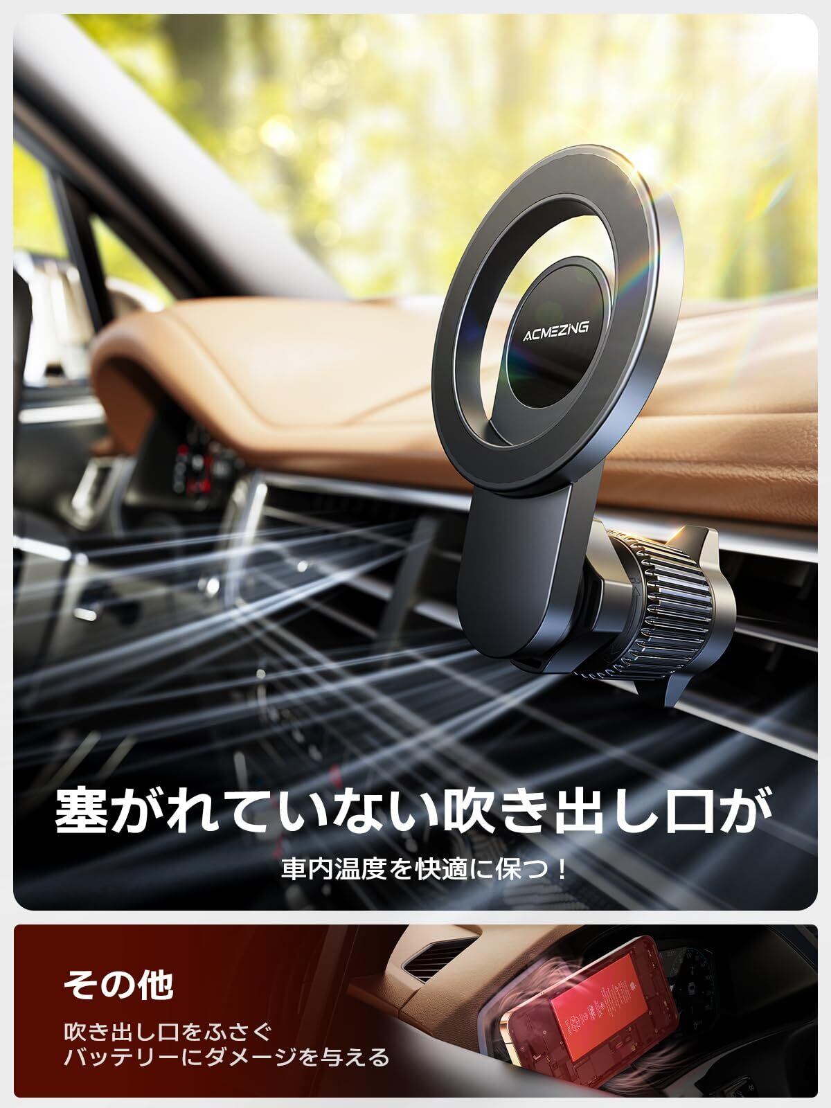 【2x360°·より広い調整範囲】ACMEZINGの車用スマホホルダー マグネットは、二重の360度調整可能なアップグレードされています。スマホホルダーを固定した後、スマートフォンは直接360度回転させることができ、再インストールの必要なし、横置きすればカーナビとして、縦置きすれば音楽を聴くことができます。用途に応じて簡単自在に向きを変えることができ、非常に便利です。また、360度回転ボールジョイントを採用し、最適な運転視野に調整する。magsafe 車 ホルダーの特別なT字型デザインのサポートアームで、360度調整可能、運転前方の視界を遮らない、スマホの温度に影響を与えず、車の吹き出し口からの空気の流れを妨げない、車内を適温に保つ!快適な安全のカーライフを満喫してみてください!
