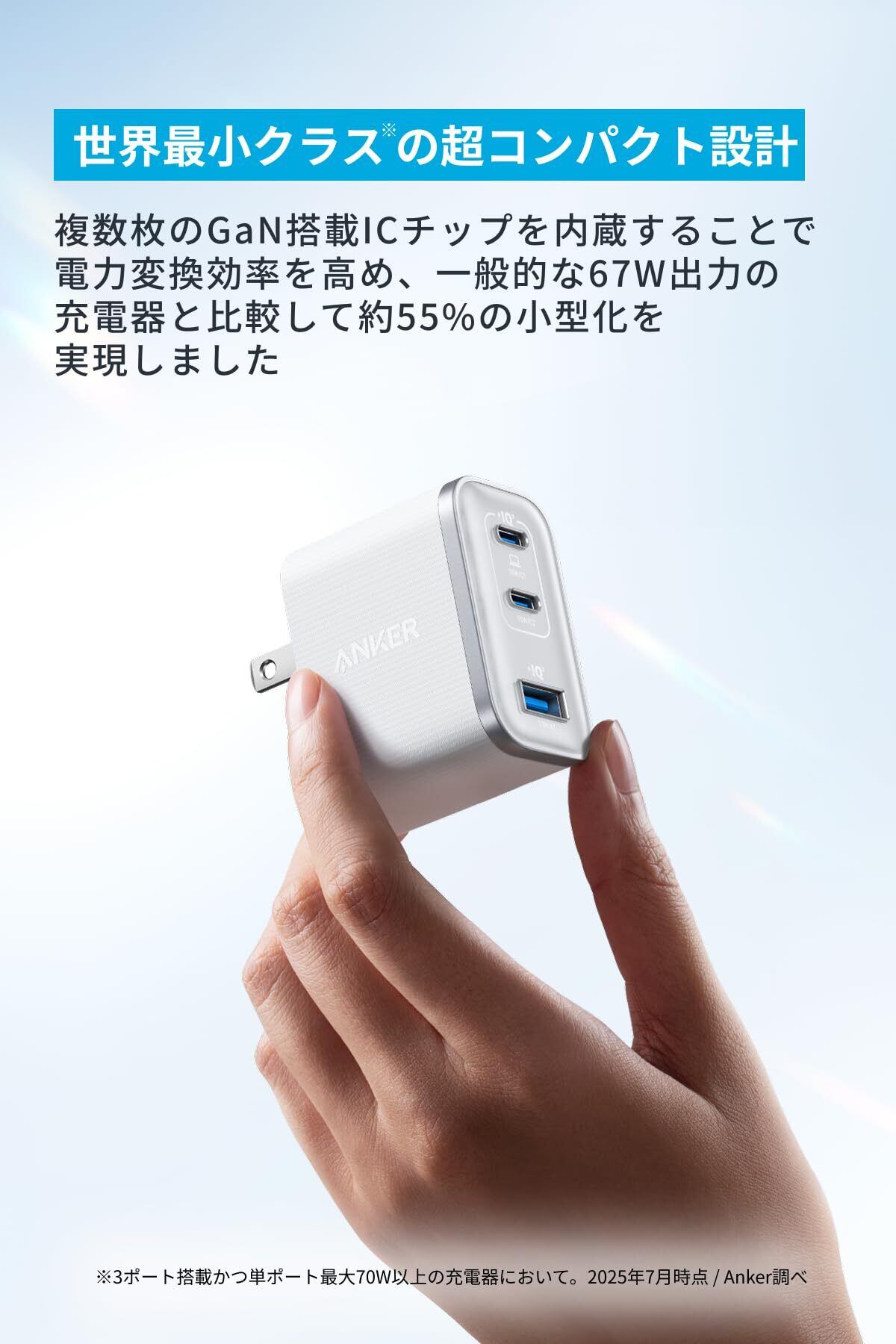Anker Nano Charger (70W, 3 Ports) ブラックiPhone 17 / 16 / 15シリーズ / Air MacBook Windows PC iPad Galaxy Android スマートフォン ノートPC 各種 その他機器対応