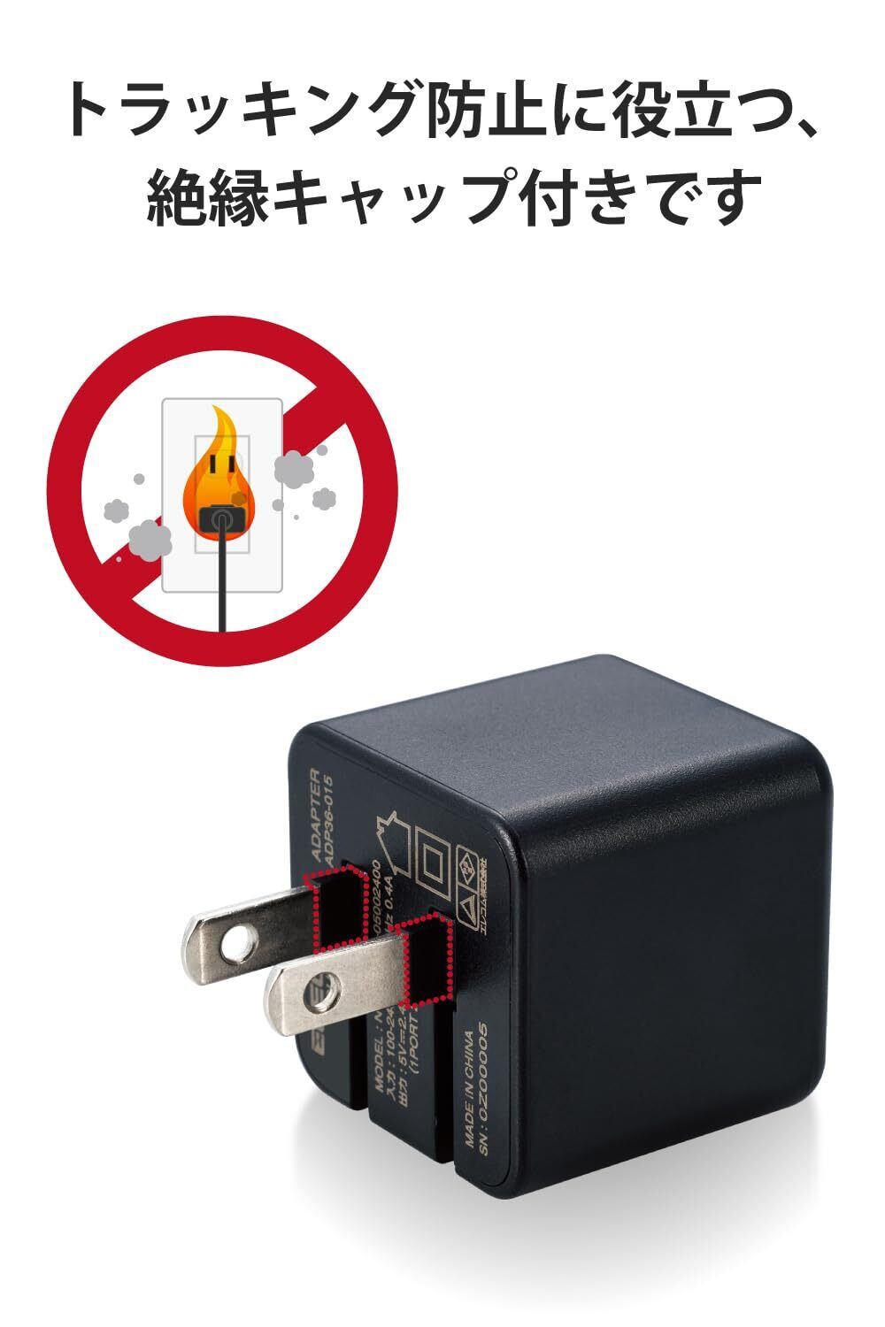 ■トラッキング現象による火災の防止に役立つ、絶縁キャップ付きのコンセントプラグを採用しています。 ※機器本体や充電器が濡れた状態で充電すると、異常な発熱・焼損の原因となり大変危険ですのでおやめください。
