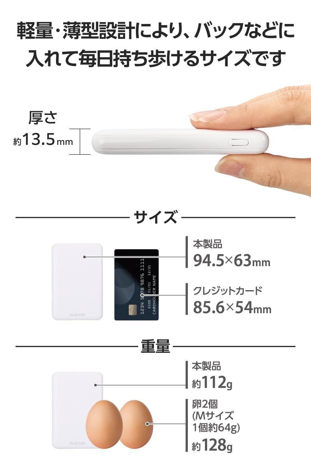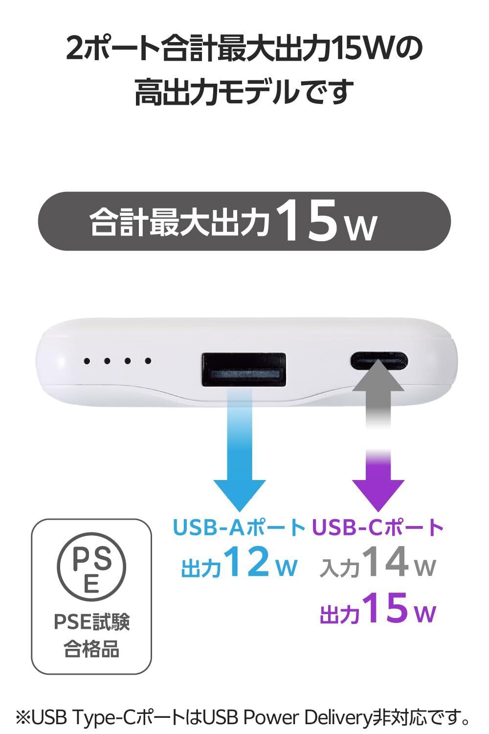エレコム モバイルバッテリー 15W 5000mAh 軽量 小型 薄型 5V 3A Type-C USB-A ケーブル別売り ホワイト EC-C12WH