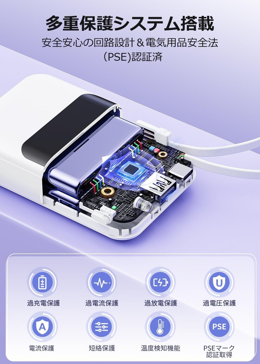 モバイルバッテリー 大容量 モバイルバッテリー 軽量 小型 急速充電 4台同時に充電 LCD残量表示 LED照明ライト PSE技術認証済 安全回路保護 Type-C入力ポート&USB-A出力ポート搭載 4種類ケーブル内蔵 携帯充電器 スマホ充電器 コンパクト&軽量 機内持ち込み可能 旅行/出張/アウトドア/停電/防災緊急用 日本語取扱説明書