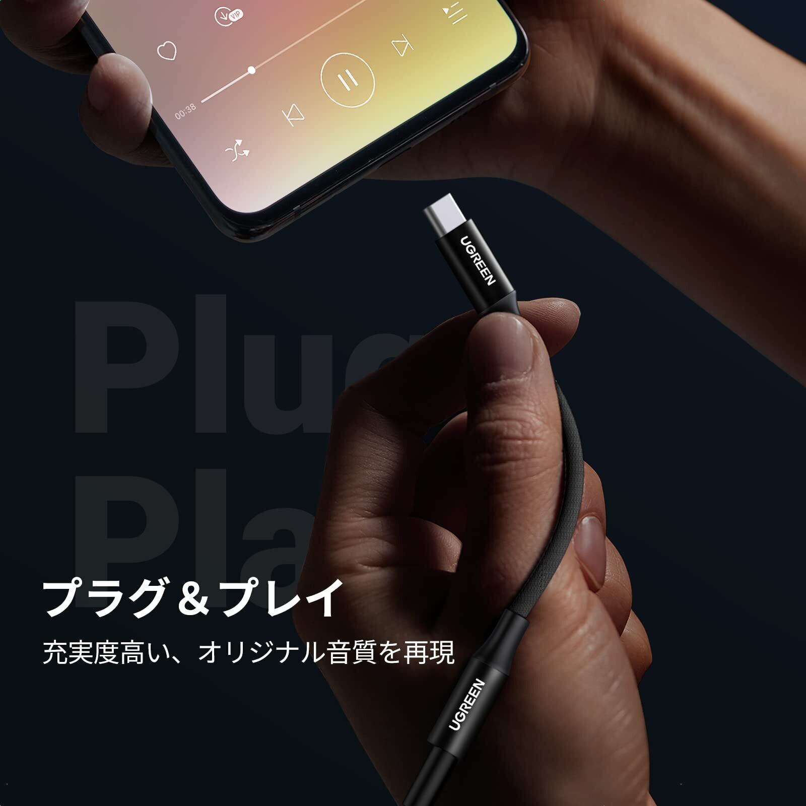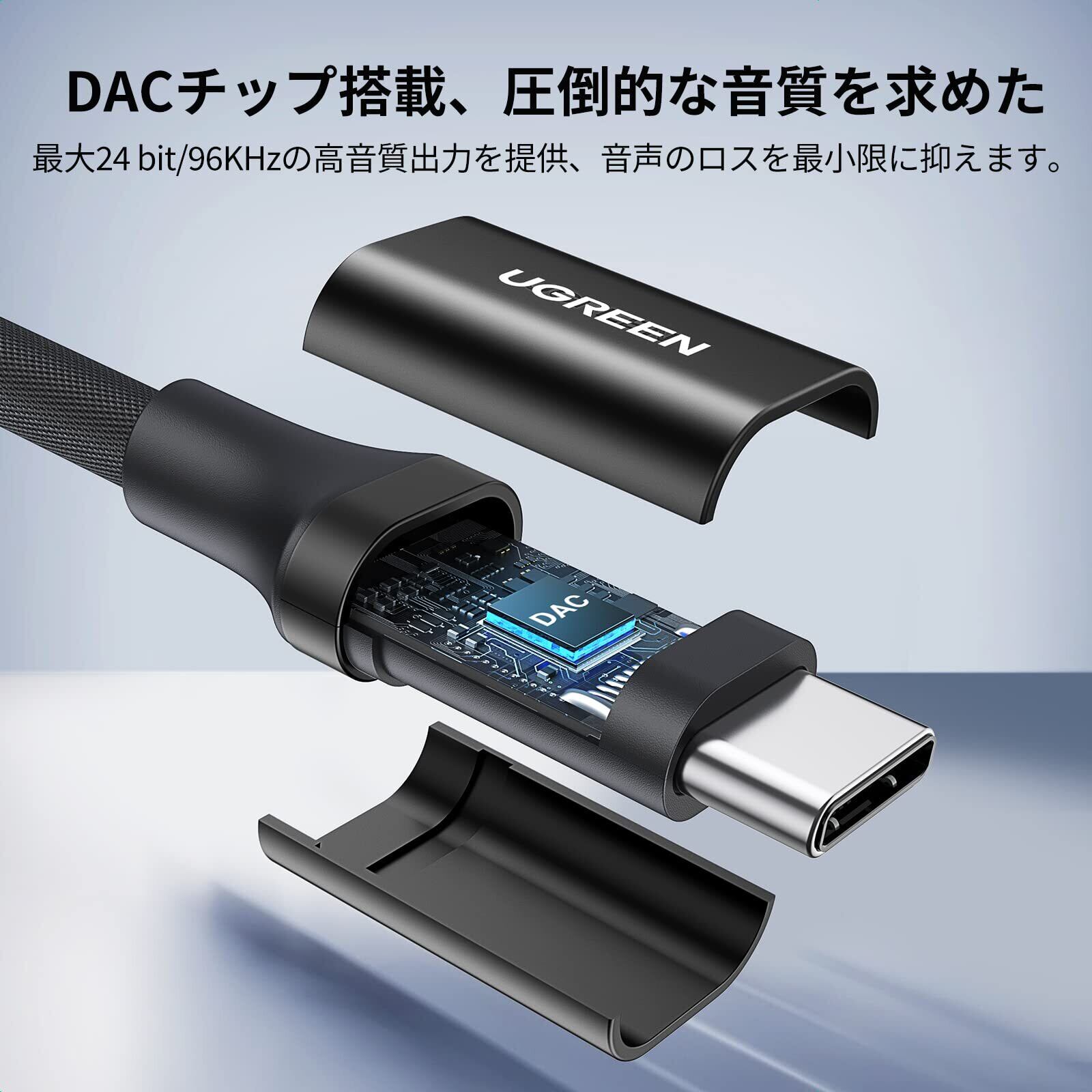 UGREENUSB C イヤホン変換アダプター イヤホンジャック Type C-3.5mm 変換アダプタ DAC搭載 24bit/96KHz対応 TRRS/4極 ナイロン編み 音量調節/通話/音楽対応 コントロール機能 iPhone17/16/15/iPad/Android/Type Cなど機器に適用