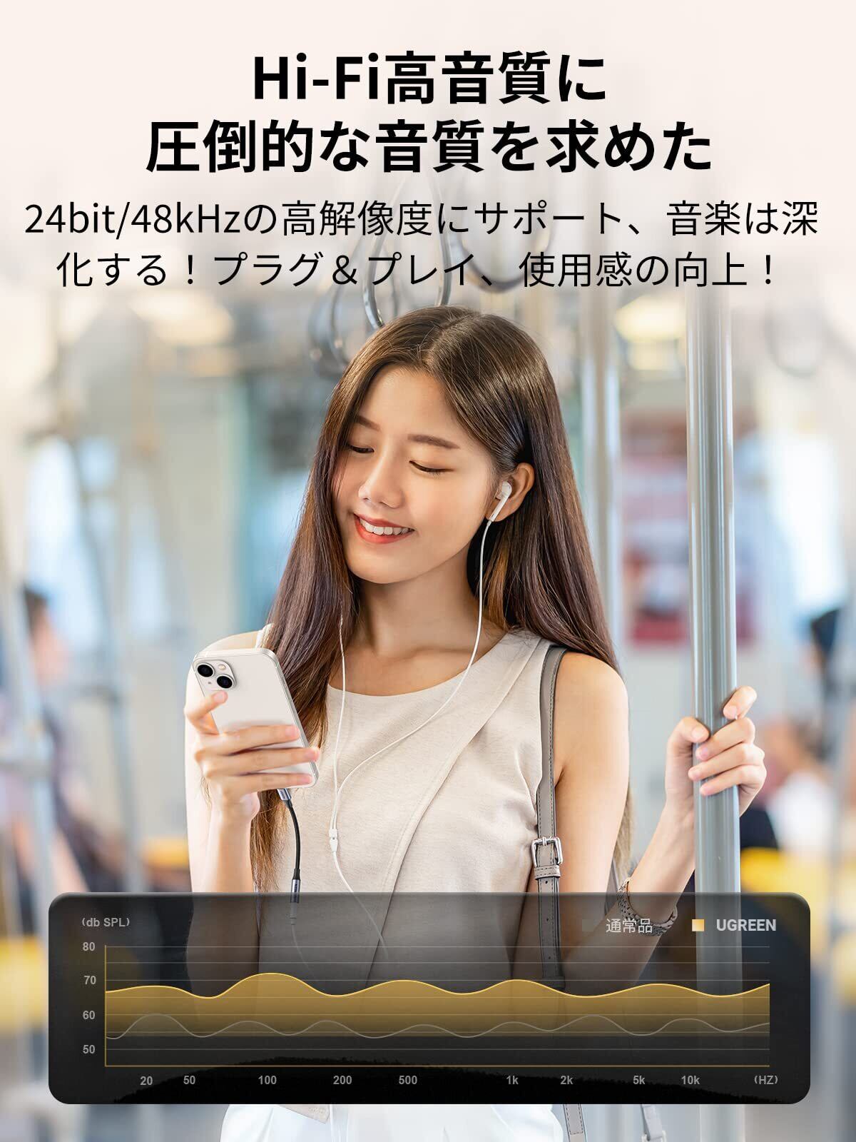 【Hi-Fi高音質・忠実に音を再現】最大24bit/48kHzの高音質出力を提供するDACチップが搭載されており、安定した高精細オーディオを実現してCDスペック同等の優れた音質を楽しめます。そして本製品イヤホン変換アダプタはインラインコントロールに対応により、iPhoneやiPadの画面に触れることなく、音楽の再生・停止やボリューム操作ができて便利です。マイク付きのイヤホンを使えば通話もできます。※本製品はCTIA Androidヘッドフォンの音量調節機能をサポートしていないことをご注意ください。※※OMTP Androidヘッドフォンには非対応。