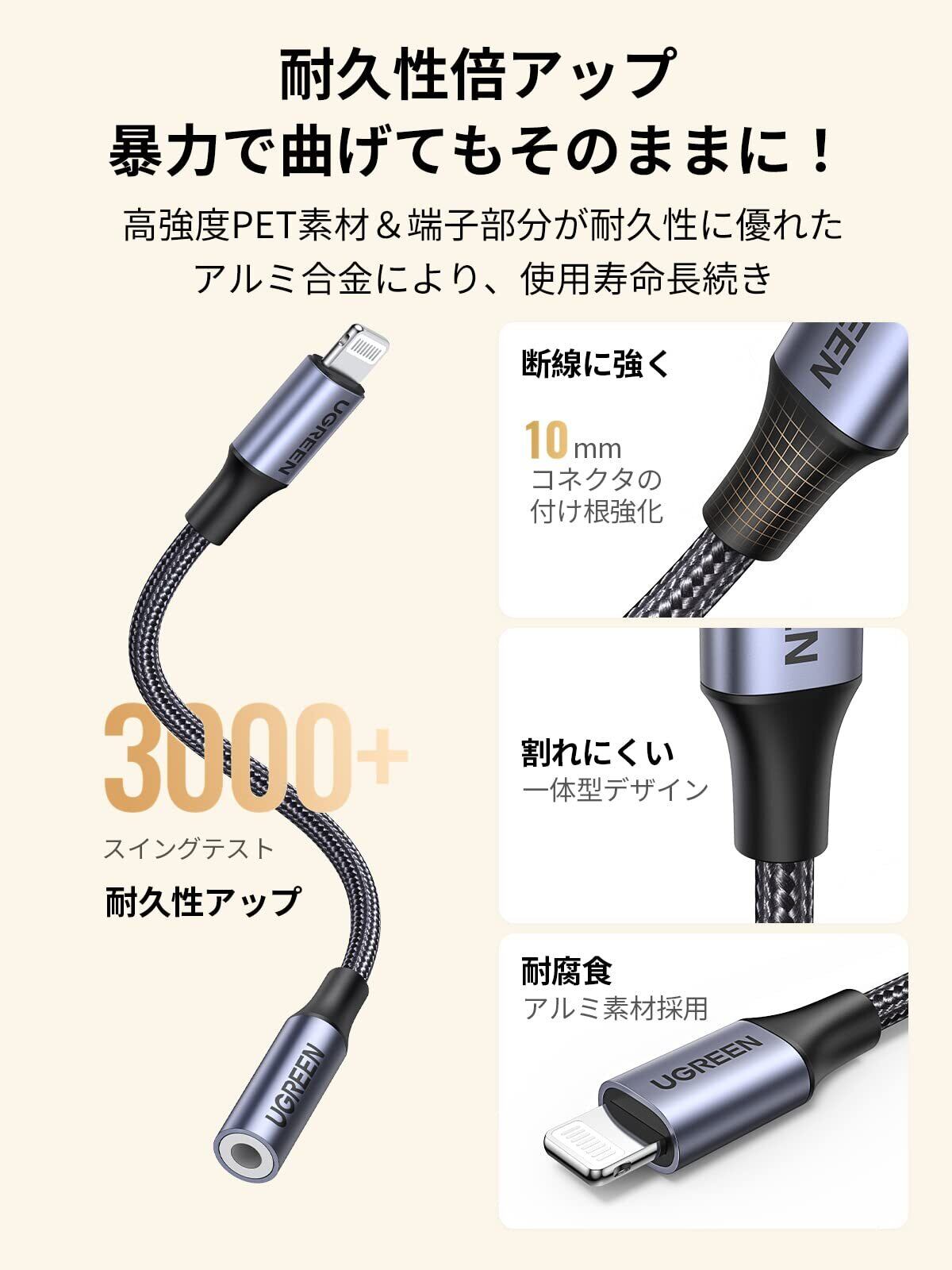 UGREEN Lightning - 3.5 mm ライトニング イヤホンジャック 変換 iPhone イヤホン 変換アダプタ ナイロン編み 24-bitハイレゾ音質 音量調節対応 通話/音楽対応 lightning イヤホン変換 iPhoneシリーズ/iPadに対応 シルバー