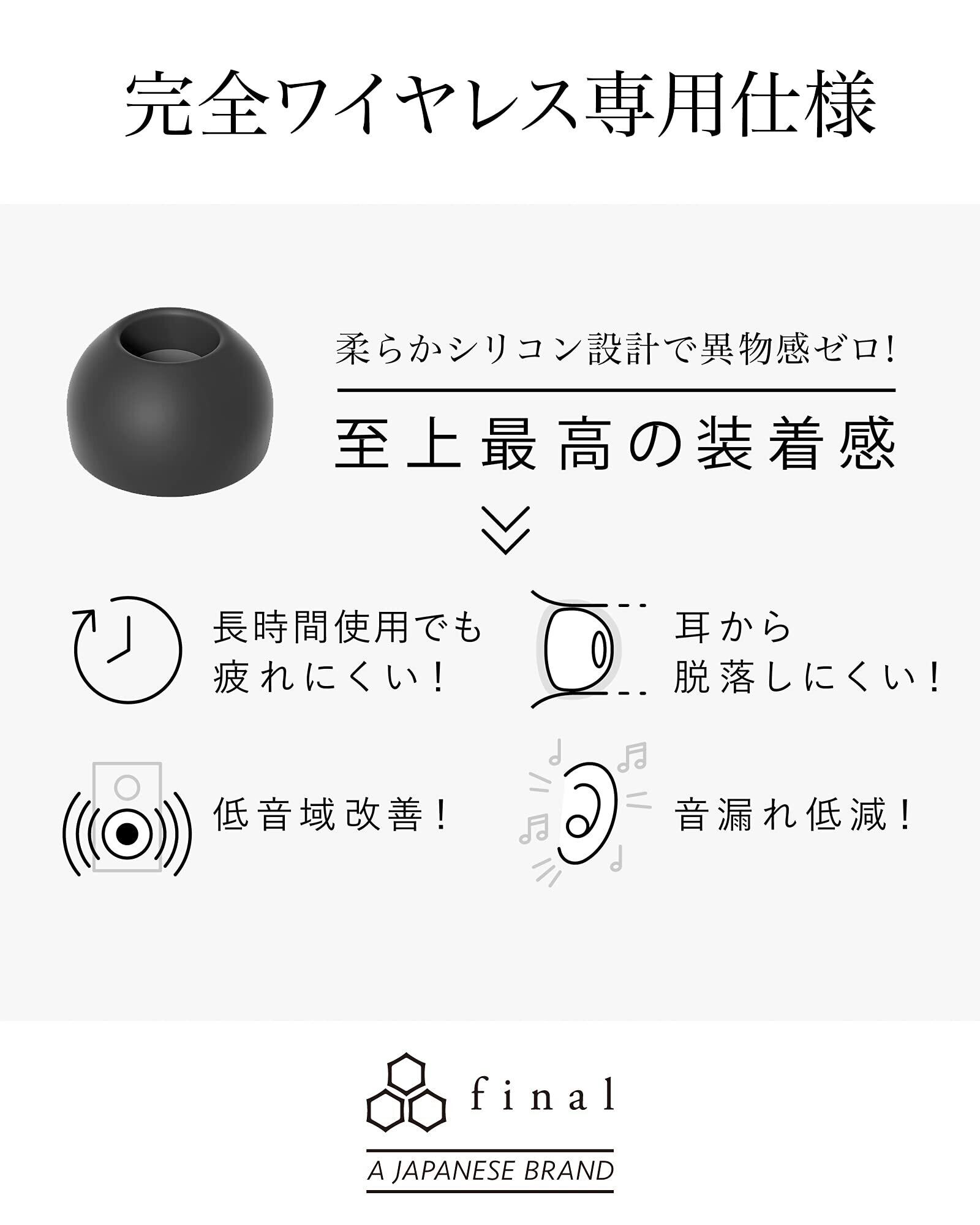 柔らかシリコン設計で異物感ゼロ。至上最高の装着感を実現したイヤーピースfinal TYPE E 完全ワイヤレス専用仕様。