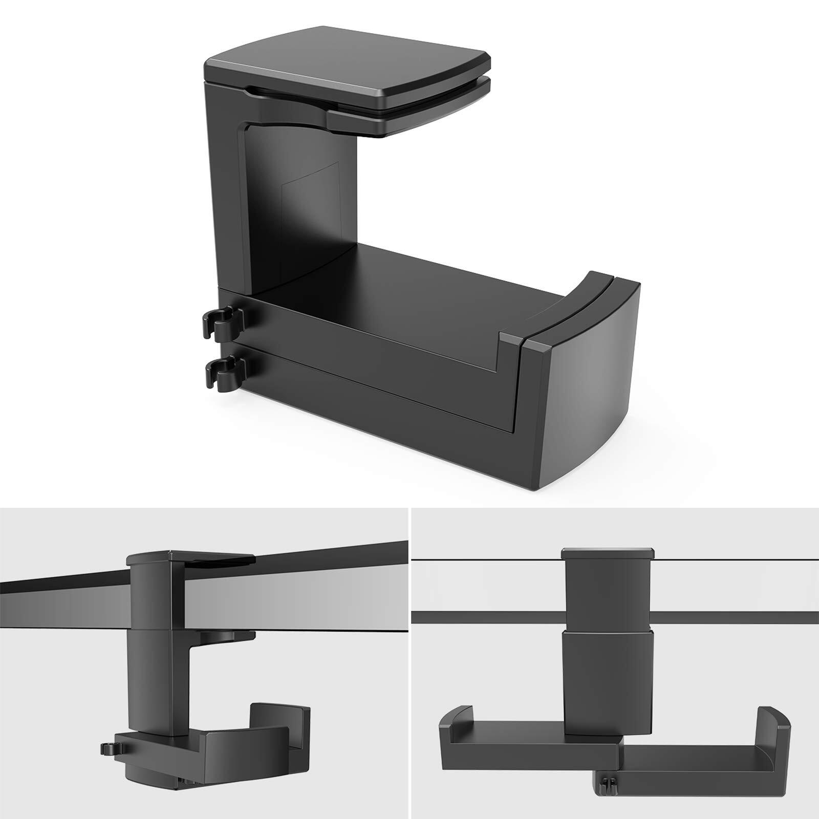 川の信芸 ヘッドホンスタンド 2台を同時に掛ける 360度回転式 ダブルフック ヘッドホンハンガー 省スペース 耐荷重2キロ 滑り止め ケーブル収納 バネ式クランプ ヘッドホンフック 幅広く機種に対応- ブラック