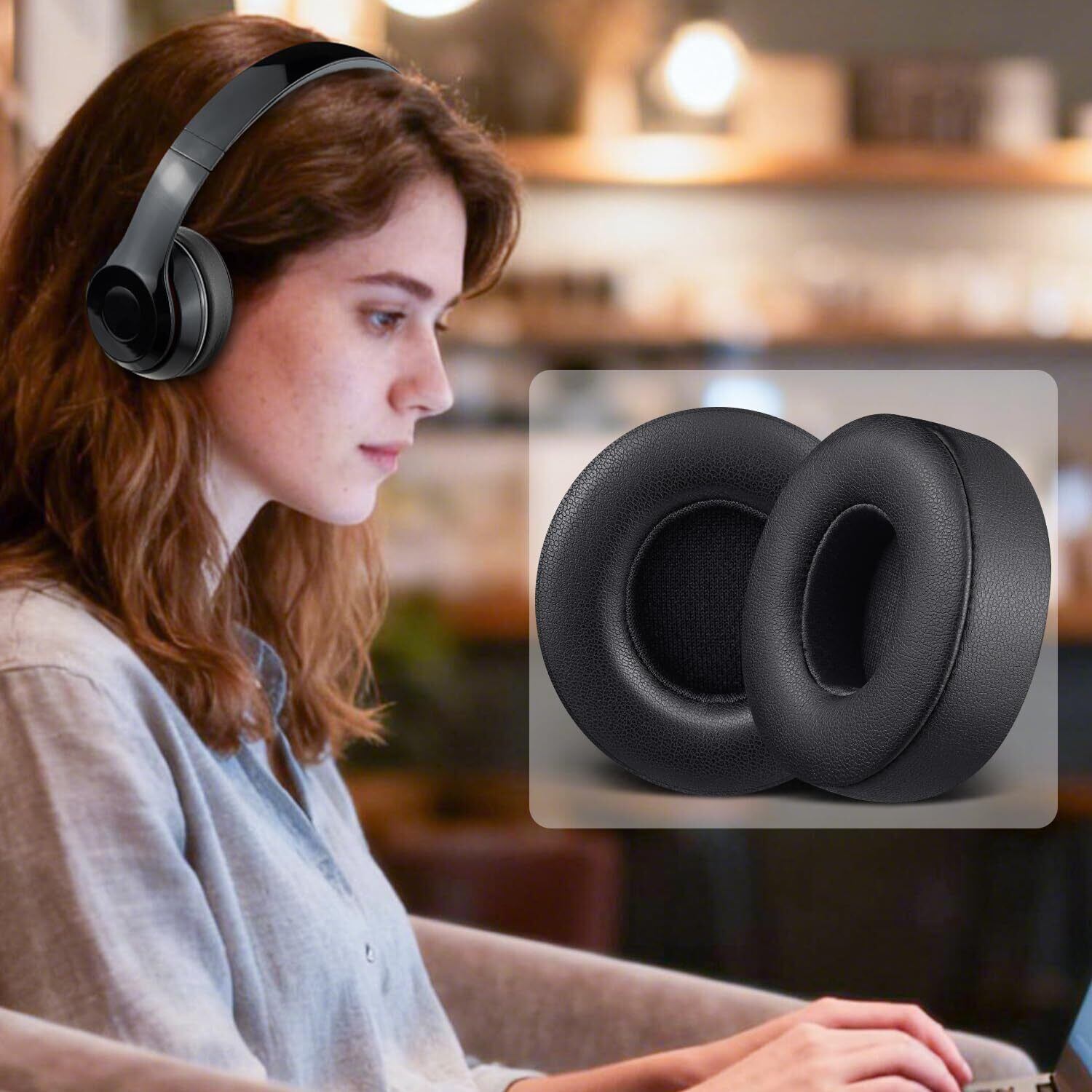 【快適な装着感】より厚くして低反発のメモリーフォームで作られたイヤーパッドはフィット感がとても良いです。高品質のソフトのプロテインレザーを採用して、パッドが柔らかくて耳触りもいいです。長時間使用時に耳への負担も軽減できます。