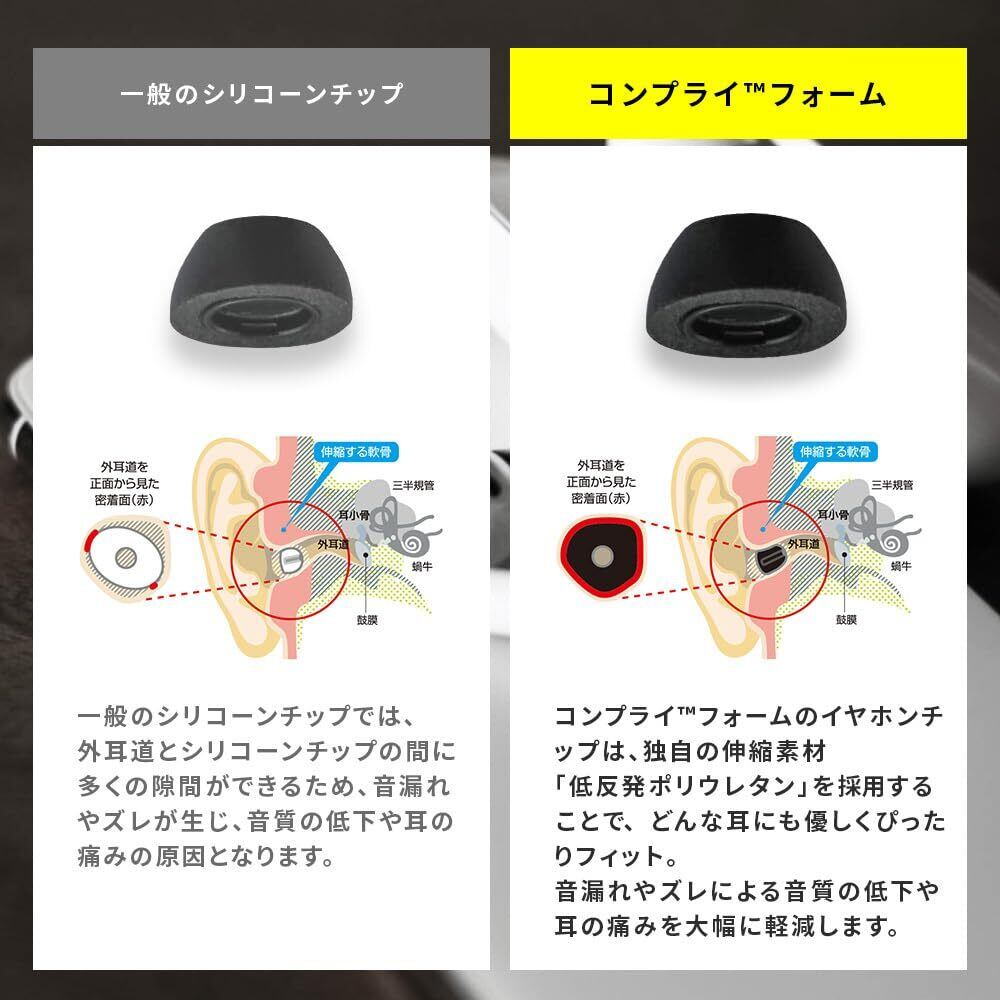 【快適な着用感】COMPLYフォームチップは、体温に反応し外耳道の独特の形状に合わせて広がる形状記憶フォームで作られており、ダイナミックなフィット感を生み出し、装着感をカンタンに向上させます。COMPLYフォームチップはシリコーンよりも優れたグリップを提供可能にします。 AirPods Proの落下や紛失に気を煩わすことはありません。