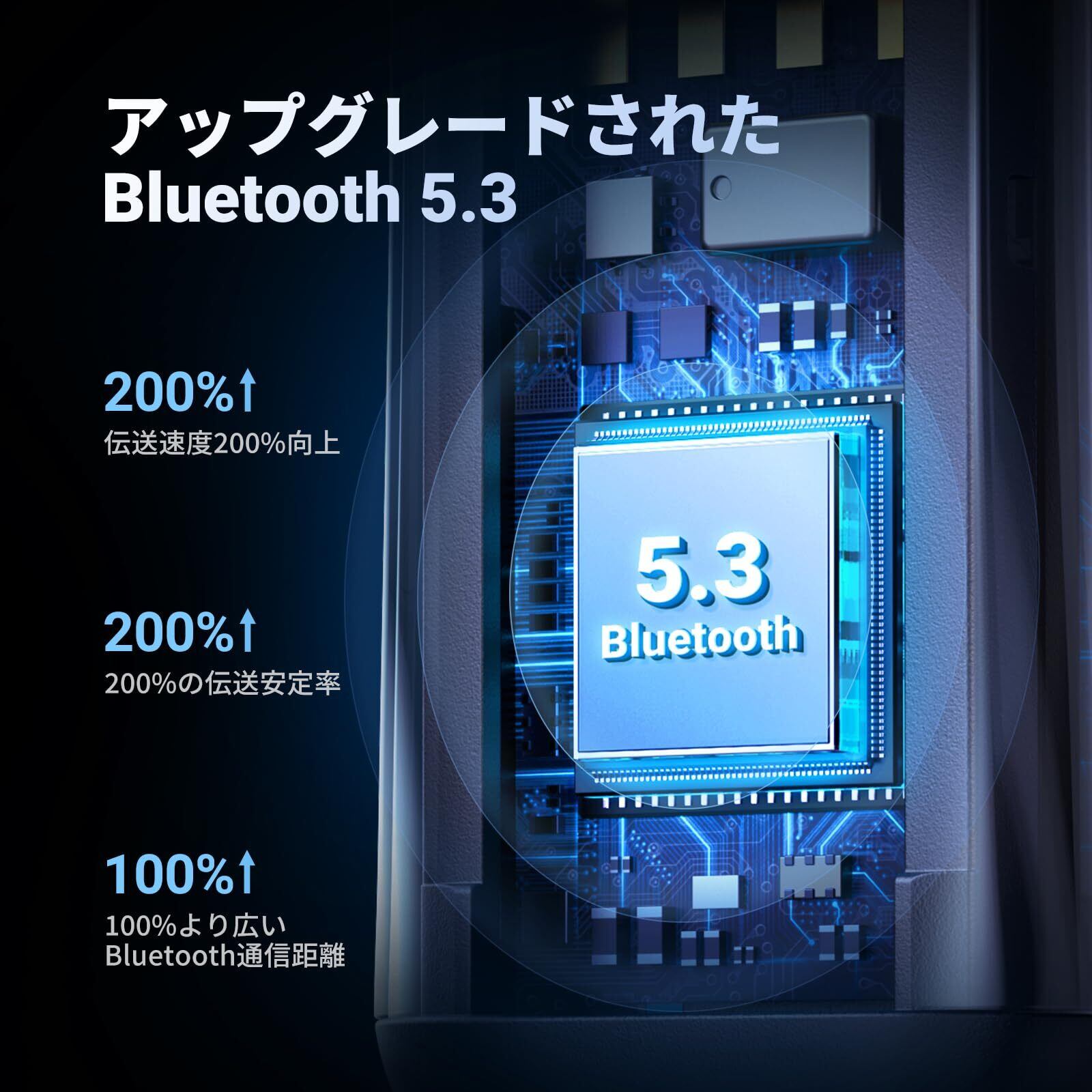 【高音質再生を実現】:AAC/SBC対応、Bluetooth 5.3およびA2DP、AVRCPオーディオプロファイル搭載、3.0より持続性が50%、ノイズ抑制能力が4倍向上し、音声遅延を抑えて高品質音質を再生します。