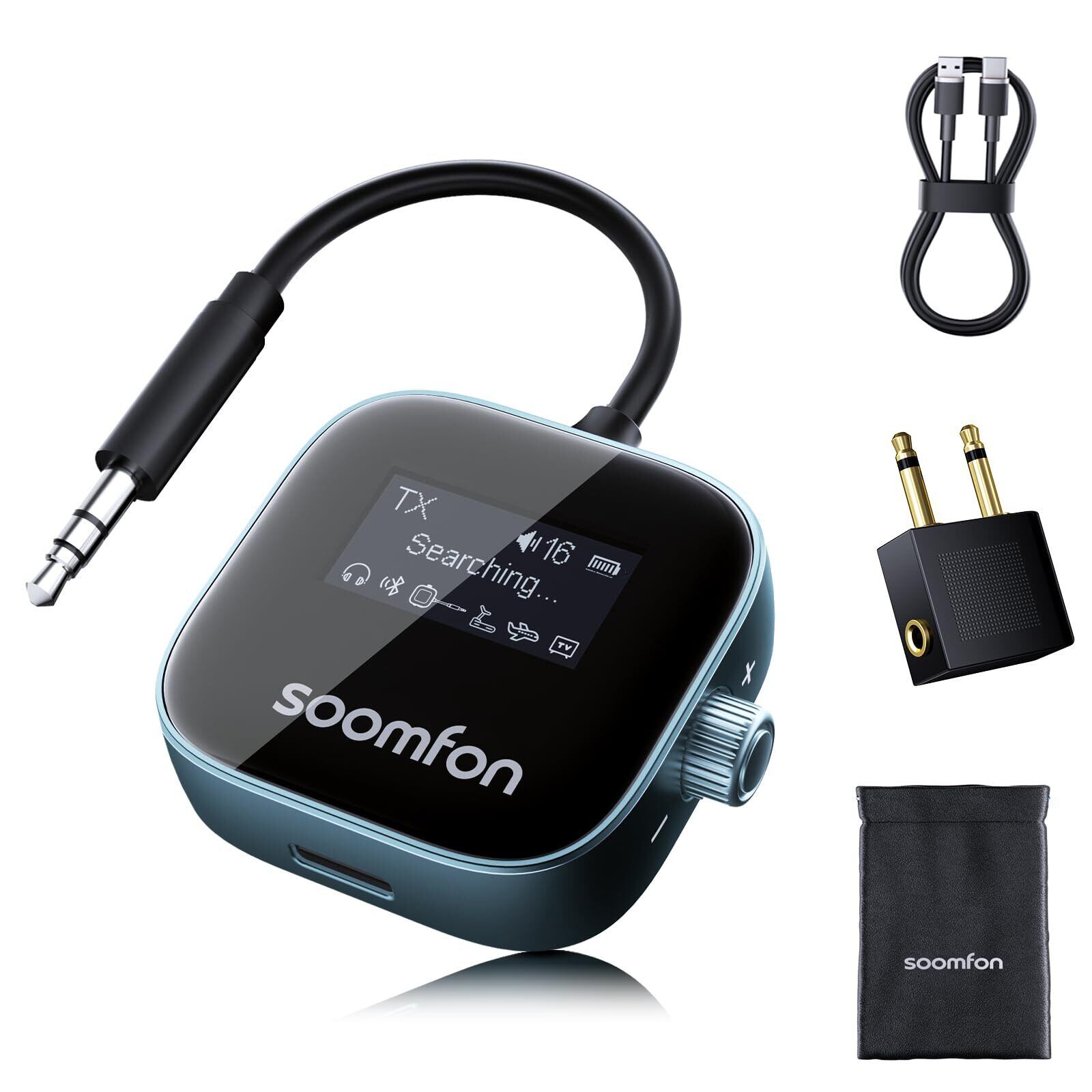 SOOMFON Bluetoothトランスミッター& レシーバー、Bluetooth5.3、LCD スクリーン付き 2-in-1 ワイヤレス 飛行機/車載/テレビ/ホーム 送信機&受信機 Airpods/ヘッドフォン用 デュアルペア、 Bluetooth 3.5mmAux オーディオトランスミッター/レシーバー SBC/AAC対応 フライト、テレビ、トレッドミル用『TELEC認証済み』