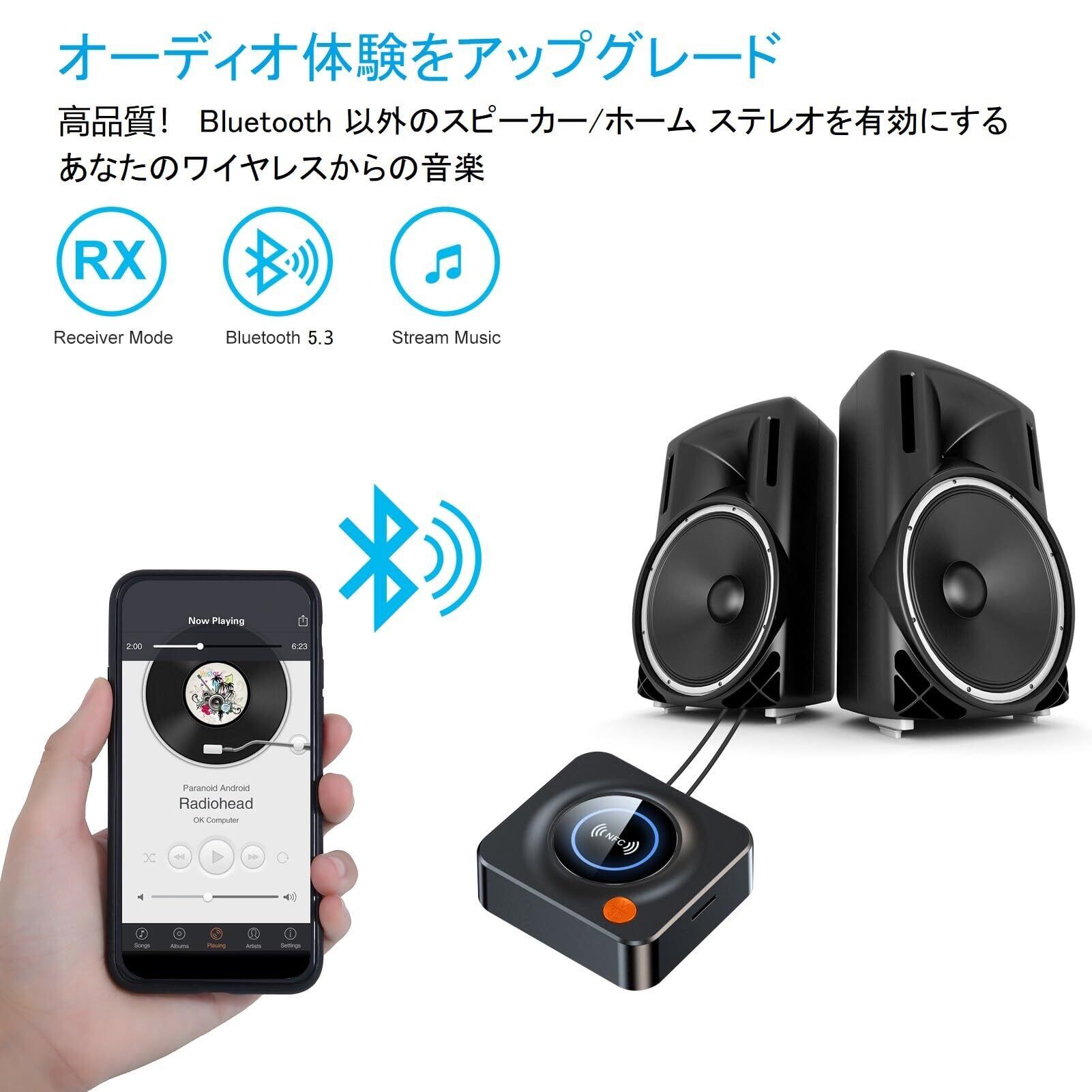 eppfun AK3040R Bluetooth 5.3 オーディオレシーバー、NFC + 3.5mm AUX/RCA/TFカードスロッ ト ブルートゥース 受信機 AAC対応、有線スピーカーまたはホームストリーミングミュージックシステム用、使用しながら充電