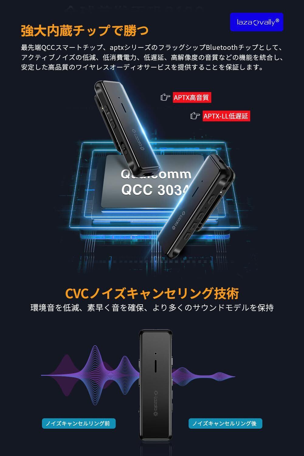 Bluetooth ワイヤレスオーディオレシーバー aptX・低遅延aptX LL対応 Qualcomm社製スマートチップ搭載 MEMS高感度マイク内蔵 音楽 通話対応 Scms-t,ガラケー、iOS, android, Windows対応