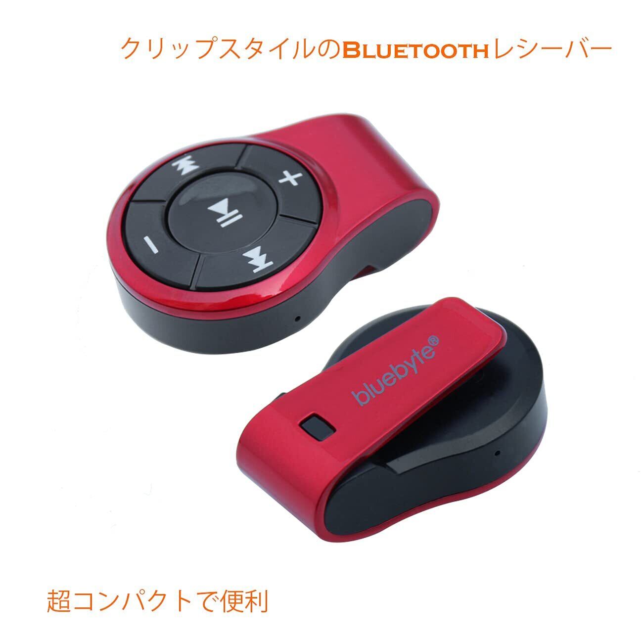 bluetooth オーディオレシーバー, Bluebyte bluetooth 受信機、bluetooth 5.0, コンパクト 軽量 (8~10時間連続再生 内蔵マイク CVC6.0 ノイズキャンセリング機能) 3.5 mm、ステレオ出力 低遅延、車載用可能、2台同時接続可能、Siri, 有線ヘッドフォンで音声を聞く(赤 202にアップグレードされたバージョン