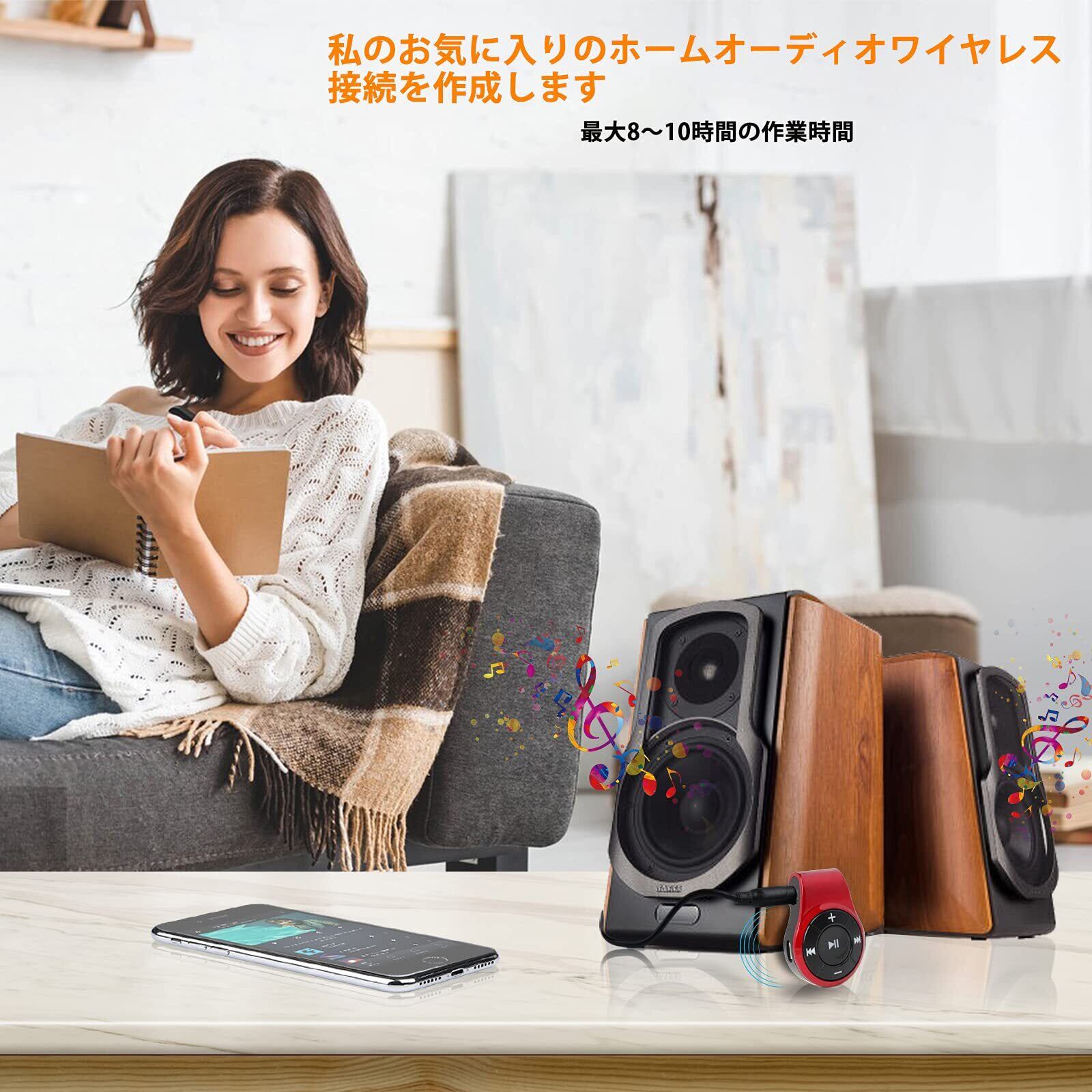 あなたのカーオーディオまたはホームシアターシステムをあなたの電話/ iPadにワイヤレスで接続し、内蔵マイクがワイヤレスハンズフリー通話をサポートするようにする
