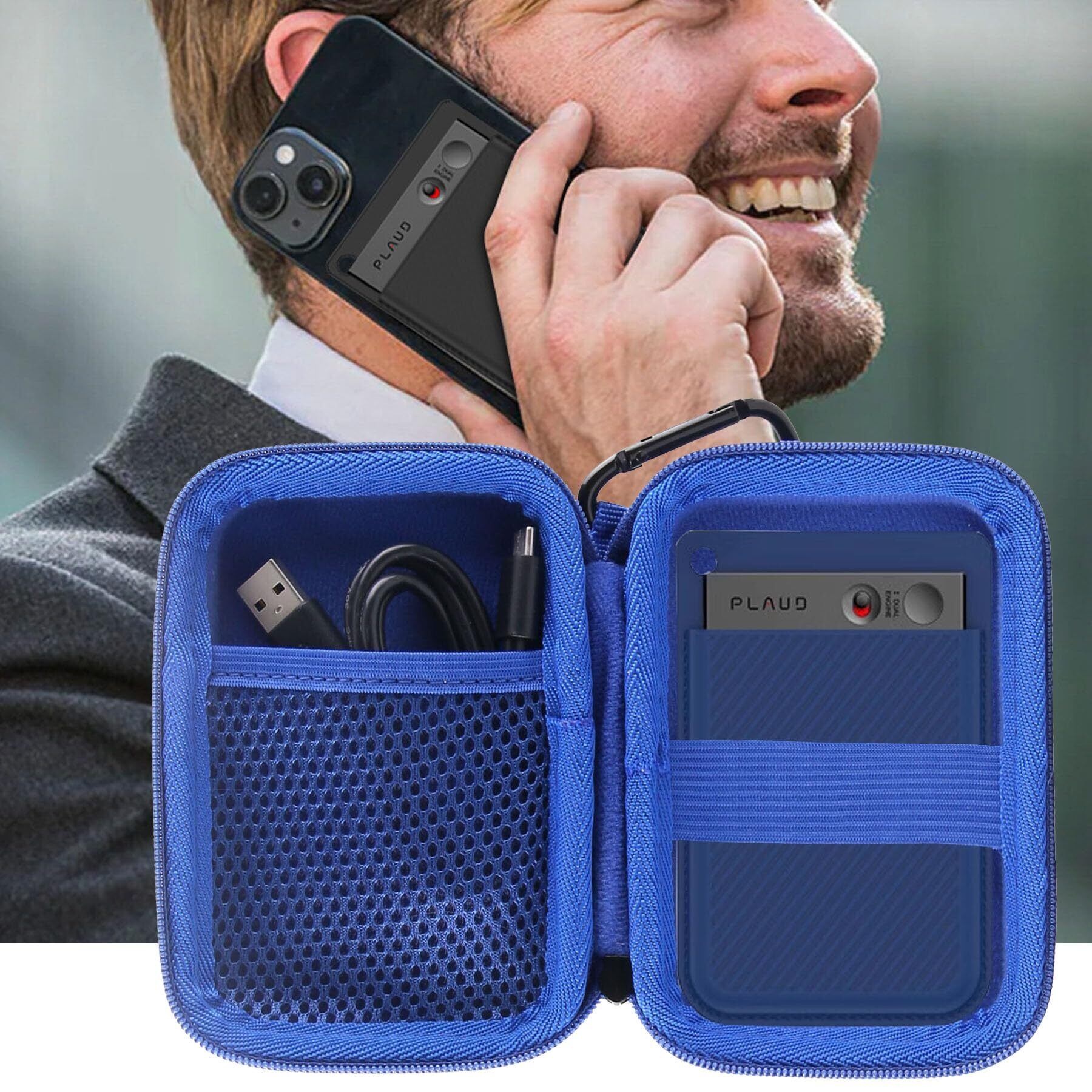 WERJIA 収納ケース 互換性 Plaud Note Pro AI/PLAUD NOTE AI/Notta Memo AI ボイスレコーダー GPT-4o 保護収納ケース (青)