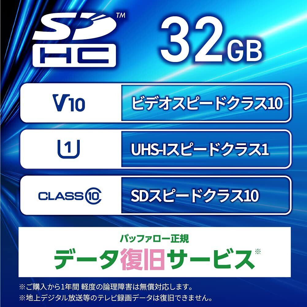 バッファロー SDカード 32GB 100MB/s UHS-1 スピードクラス1 VideoSpeedClass10 IPX7 Full HD データ復旧サービス対応 RSDC-032U11HA/N