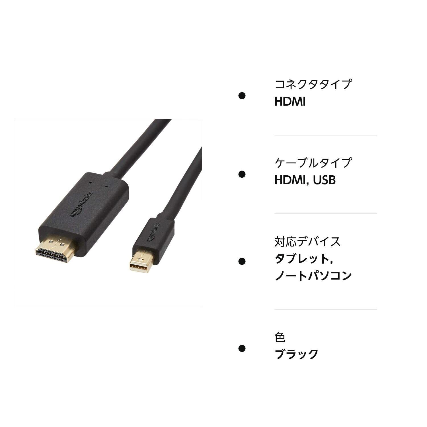 ベーシック Mini DisplayPort - HDMI 変換ケーブル タブレット用 1.8m ブラック