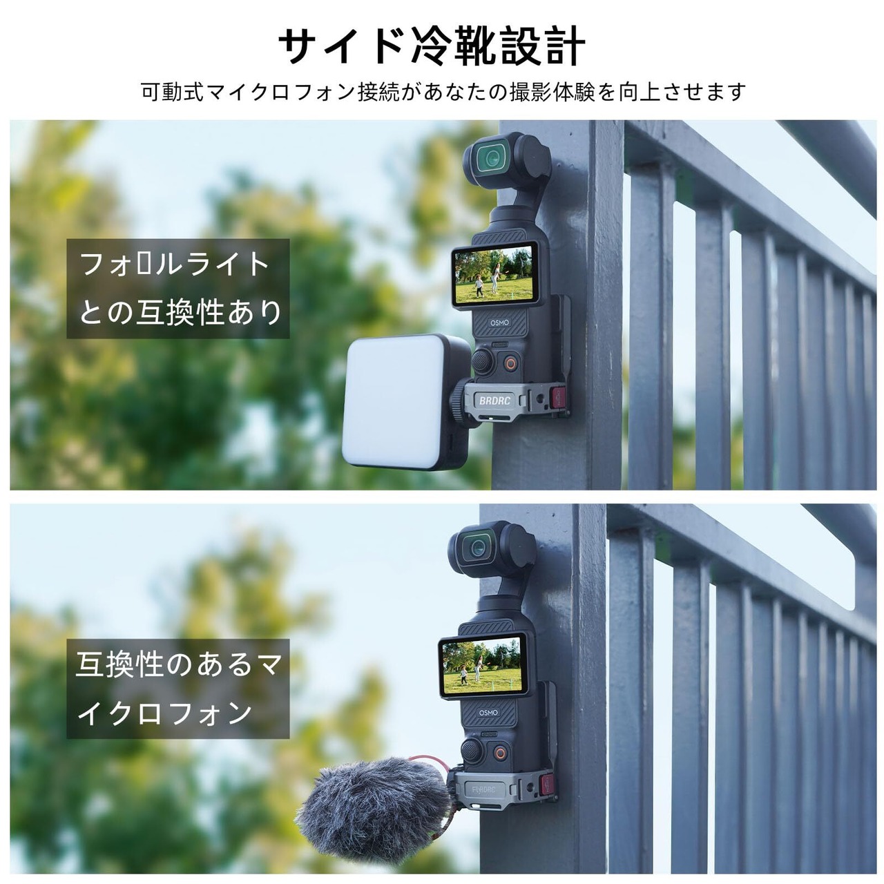 多機能クリエイティブ拡張 – サイドコールドシュースロットと折りたたみ式アクションカメラアダプター、1/4インチネジ穴設計で多機能性が向上。マイクやライトなどのアクセサリーと互換性があり、OSMO ACTIONのクイックリリースやバックパッククリップ、自転車マウント、エクステンションポール、三脚、ネックストラップ、チェストストラップなど、多くの撮影アクセサリーと接続可能です。