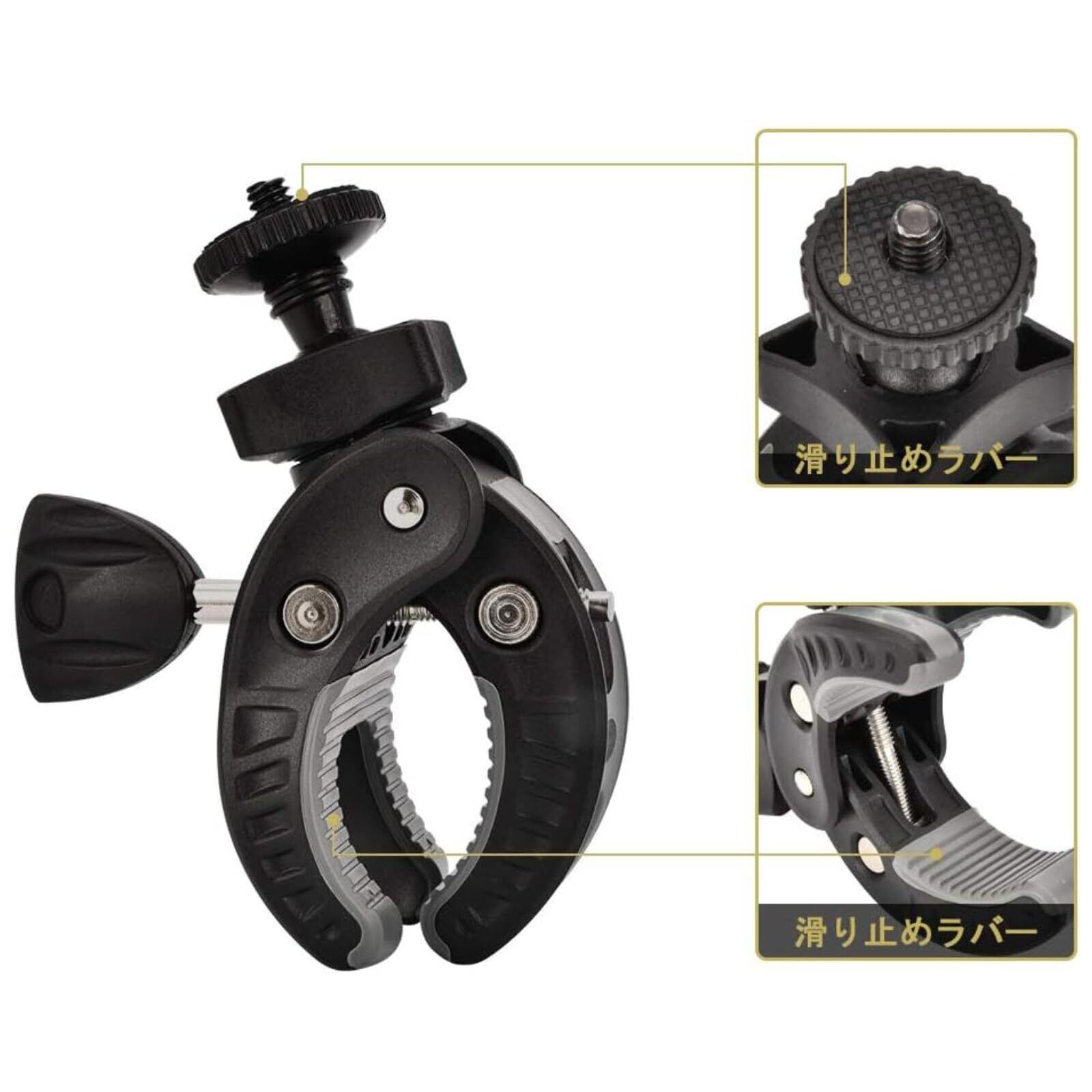 【適用範囲】バイク カメラマウントの最大開口幅は約45mmで、特別回転ツマミ設計、迅速に着脱可能です。三脚、マイクロッド、オートバイ、バイク、自転車、などに対応できるカメラホルダーです。