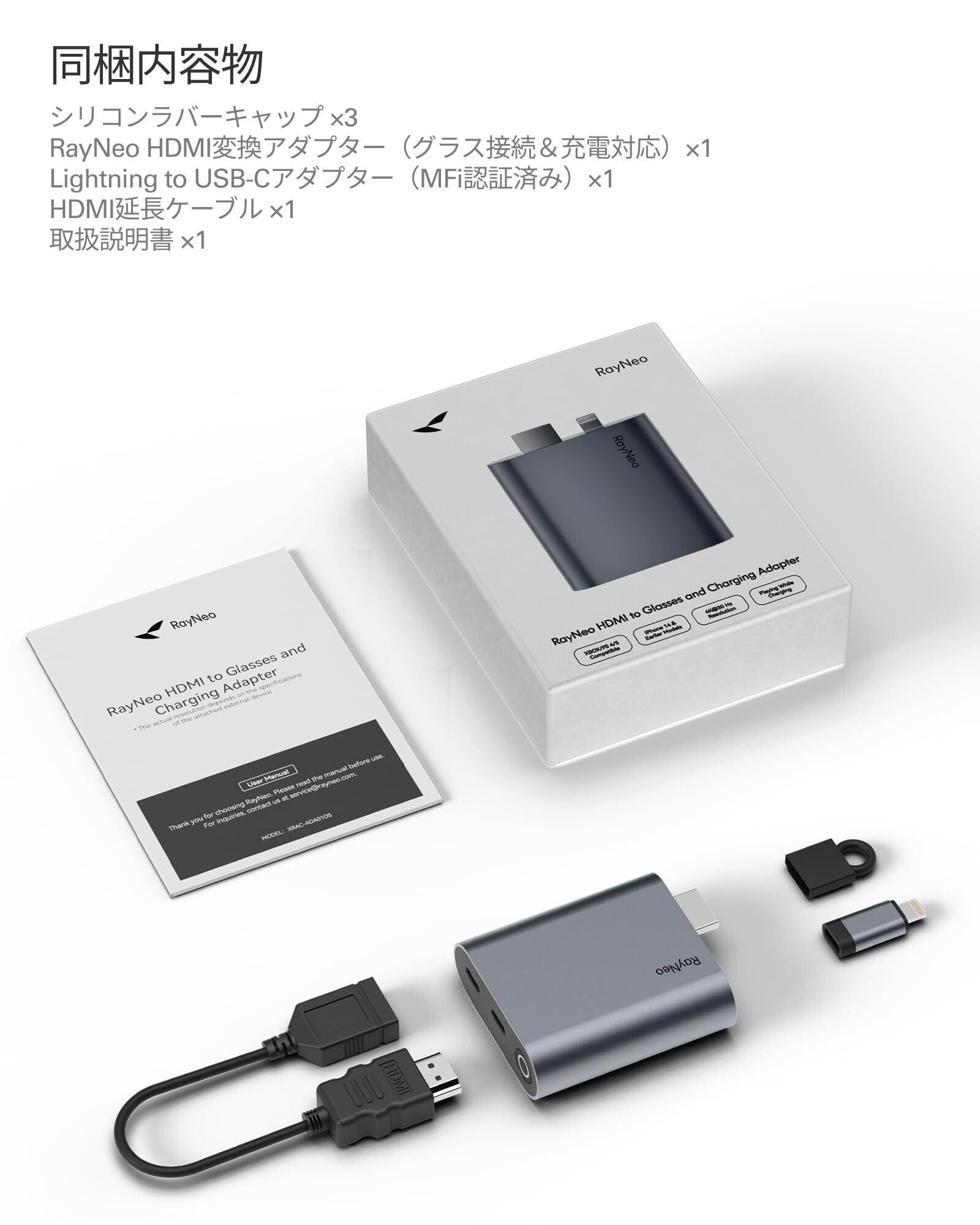RayNeo HDMI 2.0アダプター(HDR10対応) iPhone 14以前のLightning/HDMI機器対応、バッテリー内蔵&充電しながらプレイ可能、1080P@120Hz対応 - Air 4 Pro ARグラス用