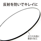 フィルターガラスの外側に黒色の墨塗り加工を施すことでガラス内での余分な乱反射を防ぎます。