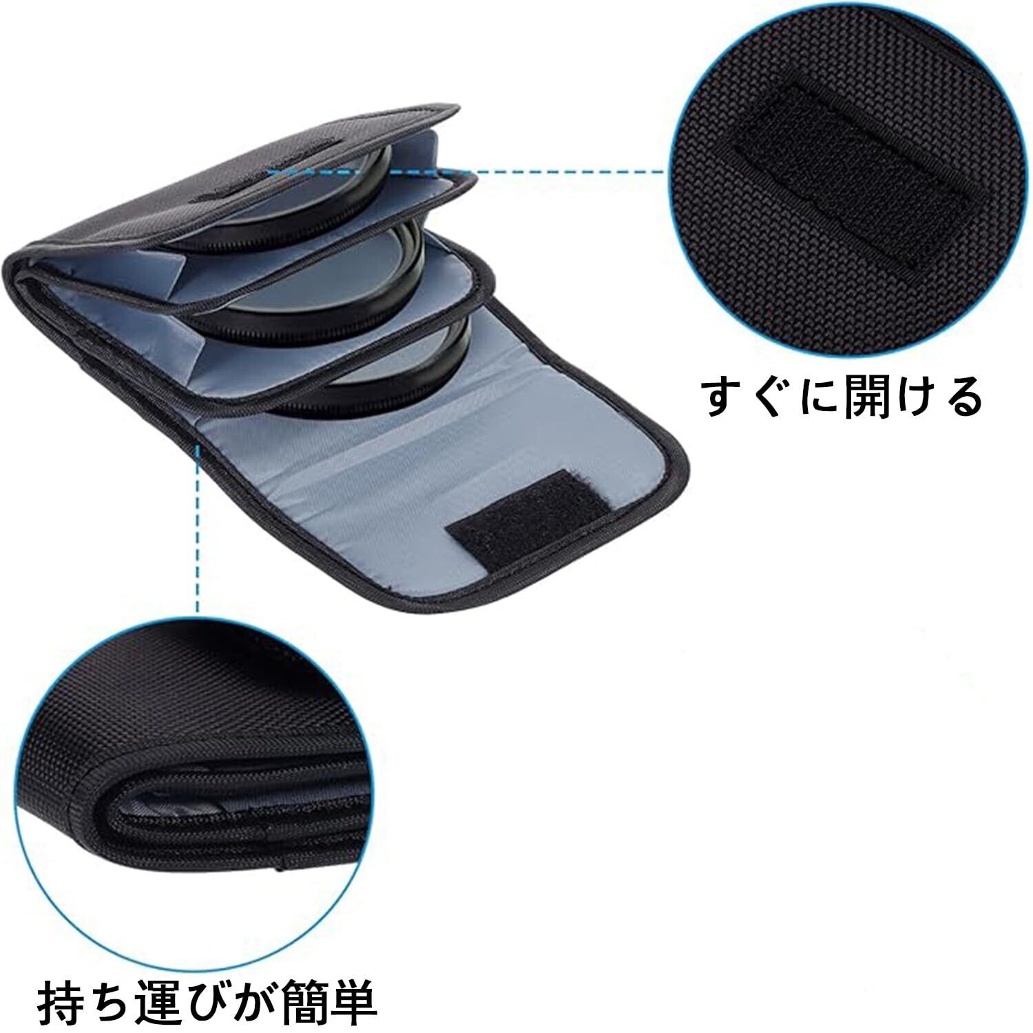 (1個)フィルターケース レンズフィルター ケース カメラ カメラフィルターレンズ レンズフィルター防水 持ち運び可能 撮影アクセサリー ブラック耐摩耗 耐衝撃性 3ポケッブラックフィルターレンズポーチ
