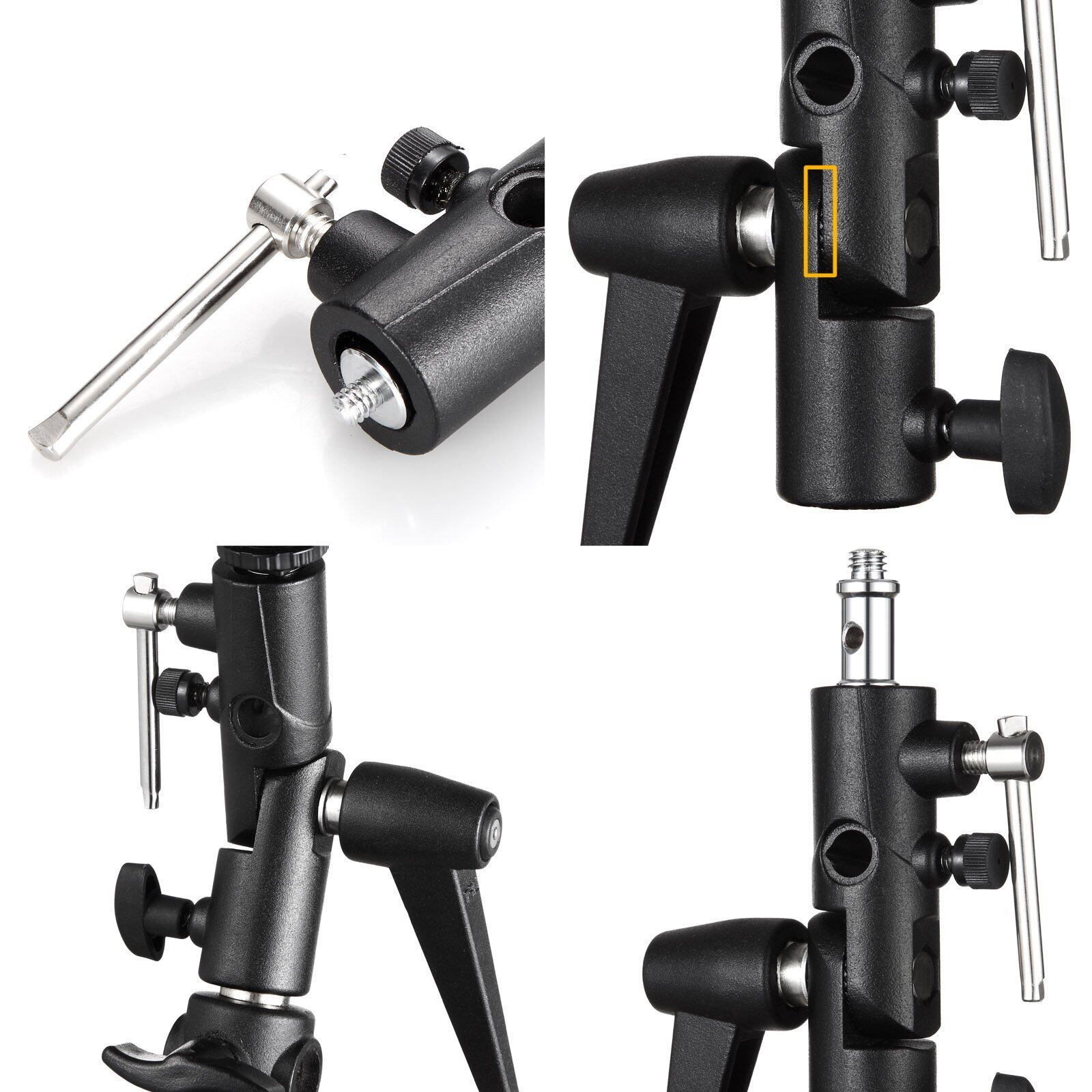 調整可能:回転可能な設計は180度調整可能です。ライトスタンドに装着し、フラッシュユニットと傘を好きなアングルに挿入出来ます。