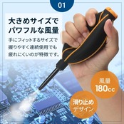 【セット内容】ブロワー×1点 【サイズ(約)】19cm×6.5cm 【カラー】ブラック×オレンジ 【材質】シリコン