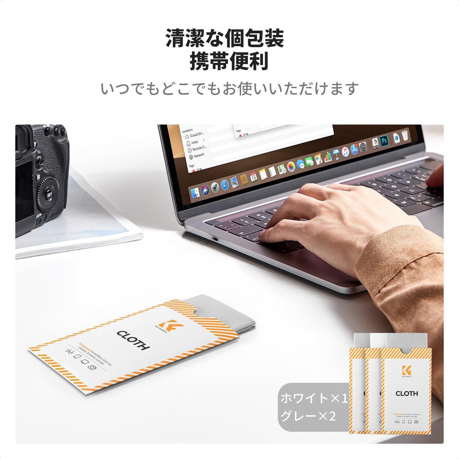 封筒バッグデザイン:マイクロファイバークロスは個包装が開口部のあるユニークな封筒バッグデザインです。計3枚入り(1枚ホワイト+2枚グレー)。半円形の切り欠きがあり、片手で操作でき、事前に消毒や洗浄を必要とせず、取り出してすぐに使用できます。