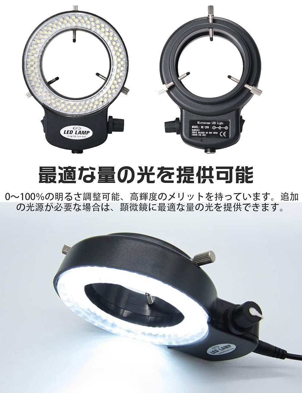 LEDリング照明ライト 144 LEDビーズ 実体顕微鏡用LED照明装置 実体顕微鏡用二重巻き 光源輝度調整可能 顕微鏡カメラ レンズの直径30mm-63mm用