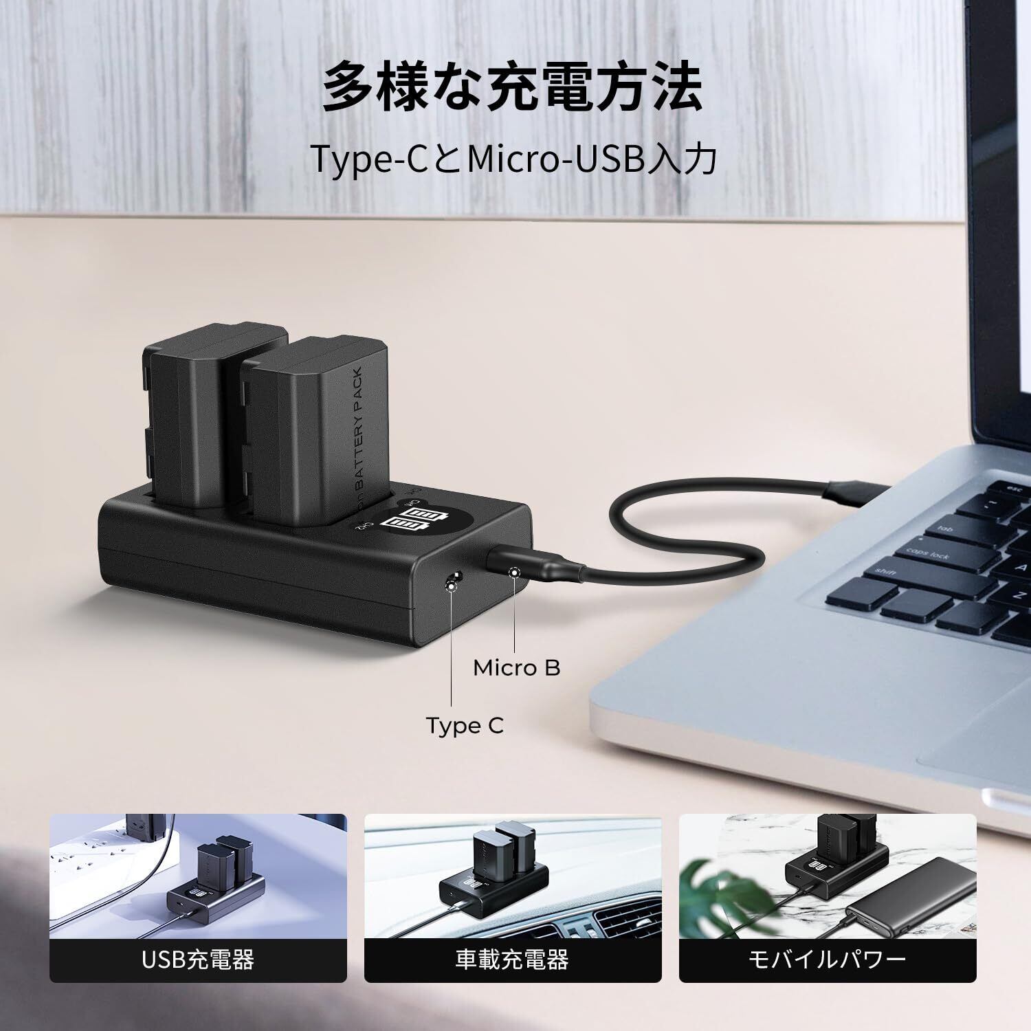 【便利な2WAY充電】NP-FZ100バッテリー充電器はmicro-USBとType-Cのデュアルインターフェースを搭載しており、より使いやすくなっています。 (ご注意:Type-C ケーブルのみが付属します。)