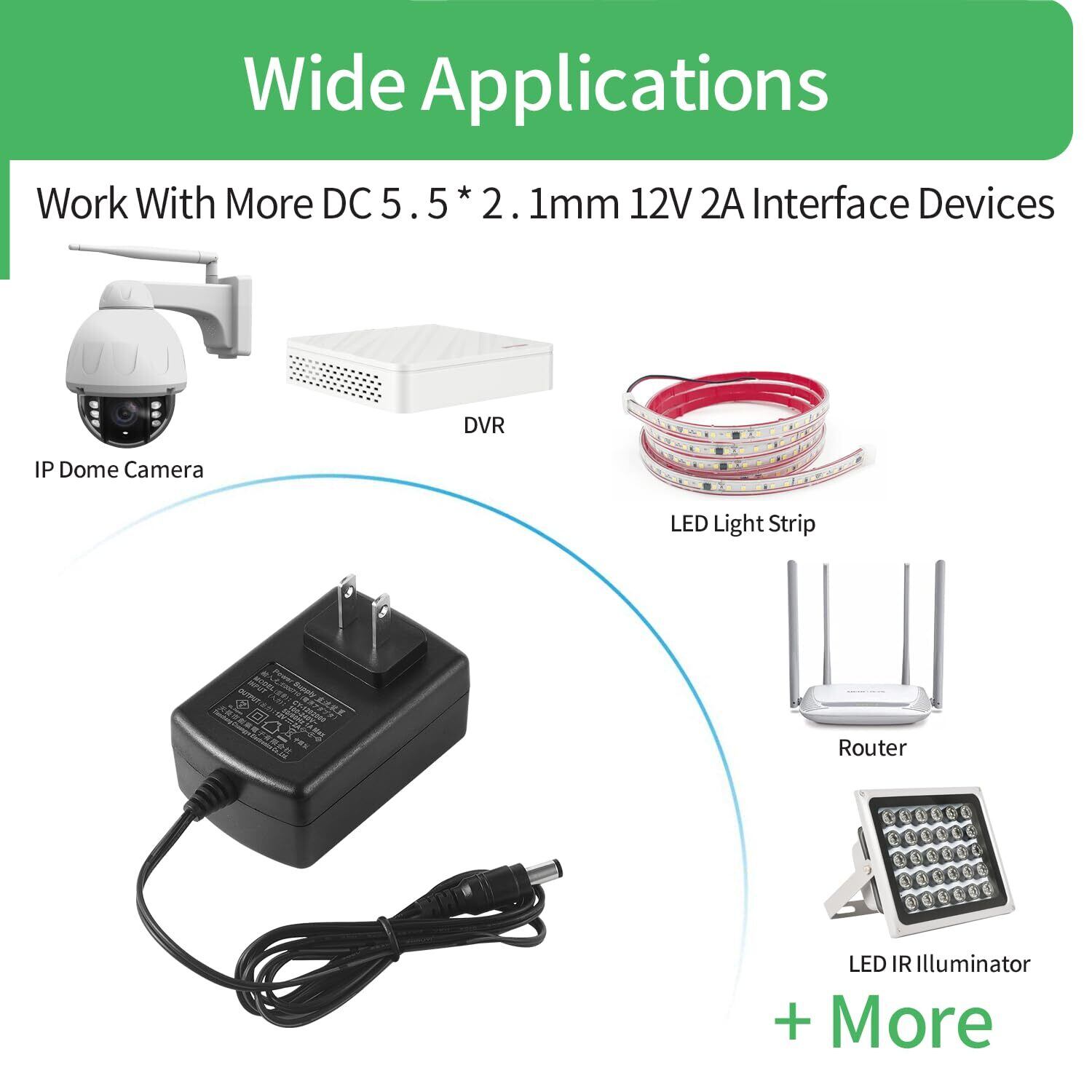 Security-01 PSE認証取得 AC to DC 12V 2A アダプター 汎用ACアダプター 最大出力24W センタープラス充電器LED テープライト ビデオ カメラ 監視カメラ など用 安全・安定電源アダプター 3個変換コネクター