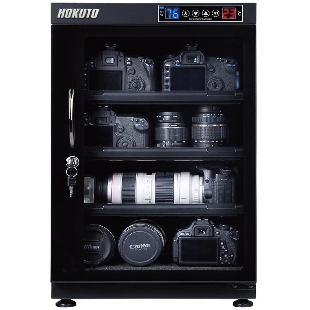 【9. 無音・無振動設計で寝室でも快適】 動作音や振動がない静音設計なので、寝室やリビングに置いても全く気にならない仕様。夜間でも快適に使用できます。 【10. 高気密キャビネットでホコリを軽減&長期間の保管が可能】 湿度管理機能に加え、高い気密性を備えたキャビネット構造によりホコリの侵入を防止。カメラ・レンズを清潔に保ち、カビや錆の発生を抑えて機材の寿命を大幅に延ばします。 ________________________________________ HOKUTO防湿庫はこんな方におすすめ! 大切なカメラやレンズをカビ・湿気から守りたい方 収納しながら充電したい方、機材の管理を効率化したい方 子供やペットのいたずら、ホコリの侵入を防ぎたい方 静音&省エネの防湿庫を探している方 カメラを守るならHOKUTO防湿庫! 高性能な湿度管理で、あなたの大切な機材を長期間保護します。