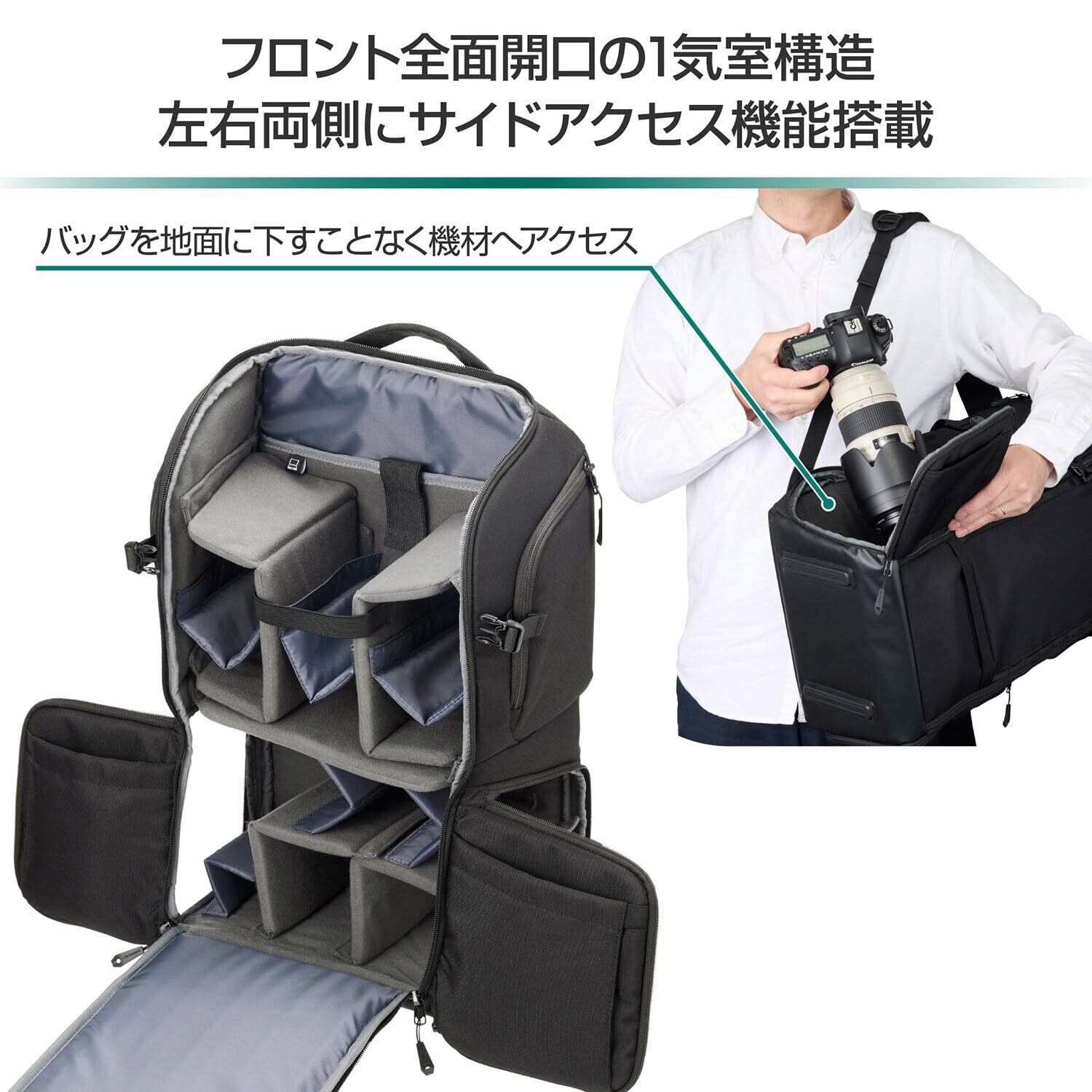地面に下ろさずに素早くカメラを出し入れできるサイドアクセス機構を左右両側に備え、収納力と機動力を併せ持ったカメラバックパックです。