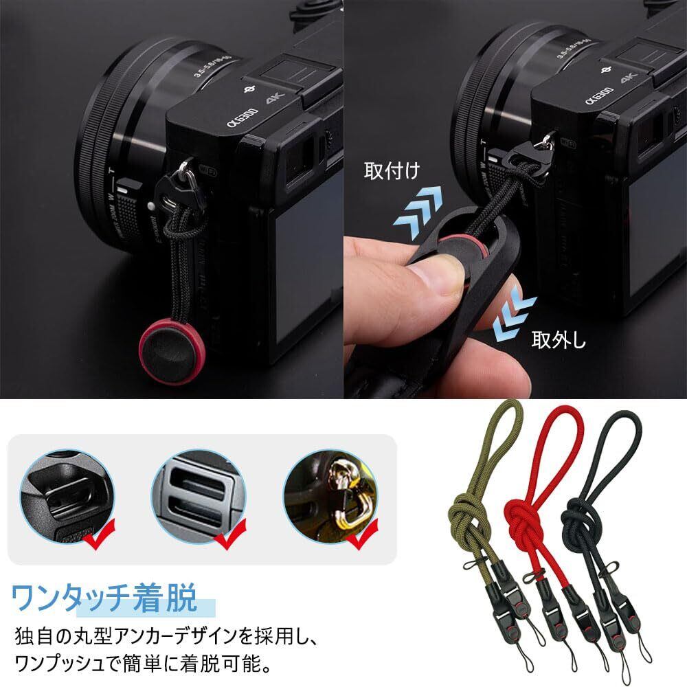 【材質】このストラップは、登山ロープと同等レベルの高強度ナイロンを使用しており、耐摩耗性・耐引張性に優れ。