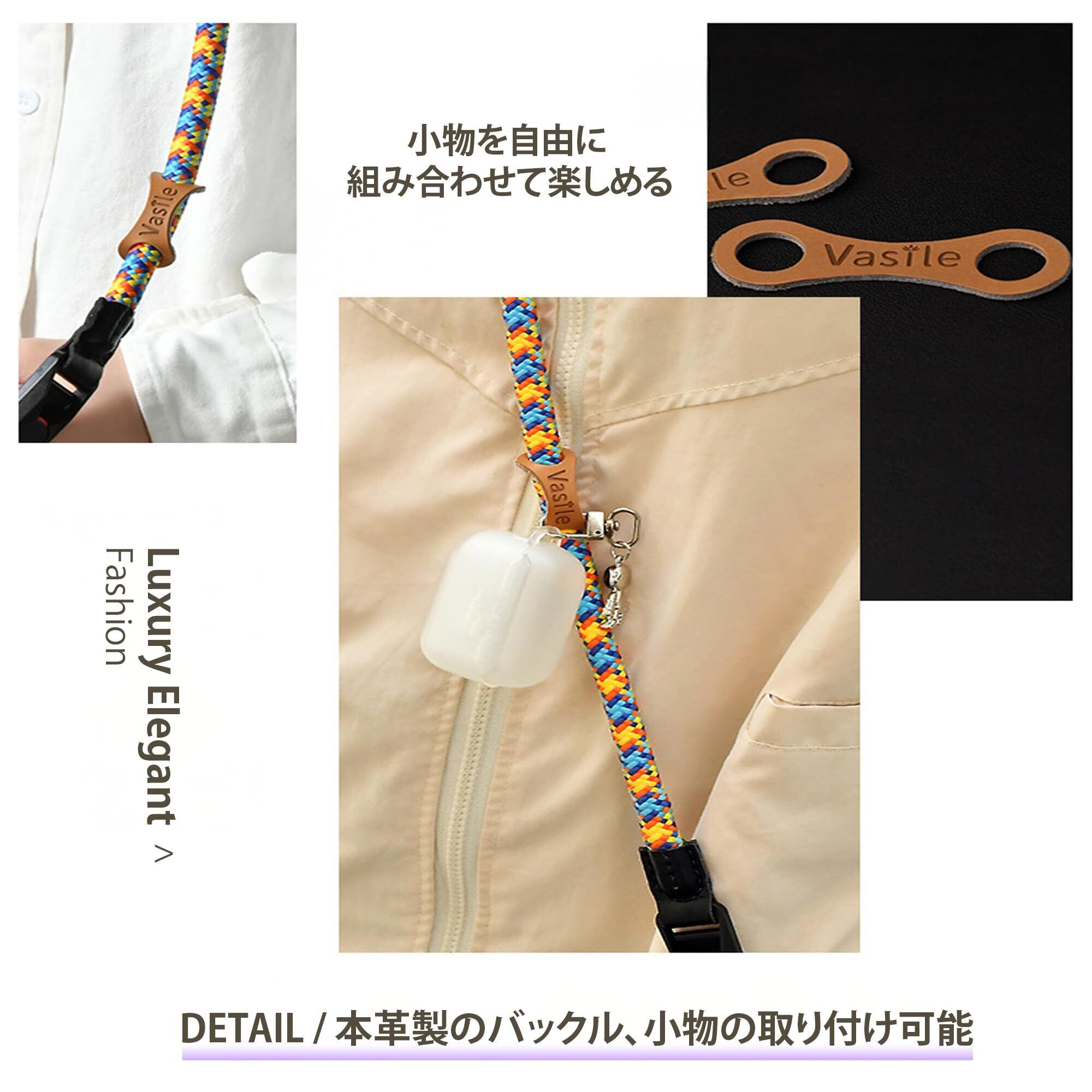 1. 上質素材×高耐久仕様 約1cm径の登山用ロープと本革パーツを組み合わせた高耐久設計。しなやかさと強度を両立し、アウトドアや日常撮影にも対応。結び目で長さ調整が可能で、装着や調整もスムーズ。高機能でありながら洗練されたデザインです。