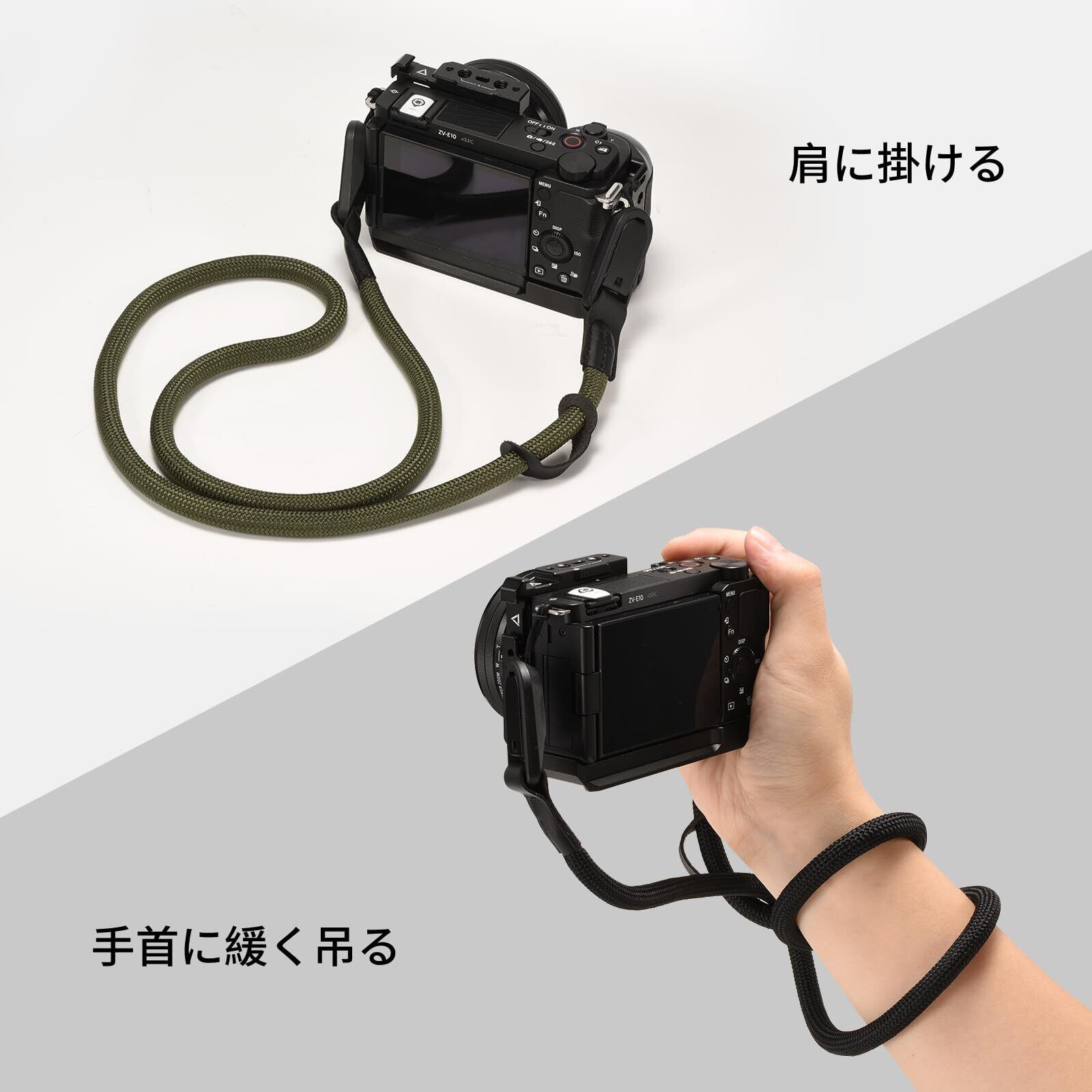 カメラストラップ ネックストラップ ショルダーストラップ クライミングロープ製 丸ひも 一眼レフ/ミラーレス/コンパクトカメラ用 (グリーン)