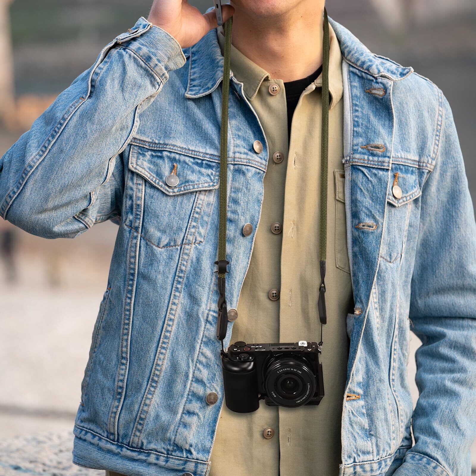 【丈夫で快適】動きの自由を超越したクライミングロープのデザインを兼ね備えていながら、カメラが突然落ちるのを効果的に防ぎます。ストラップの接合部は高品質のマイクロファイバーレザーを採用し、十分な強度を備えています。