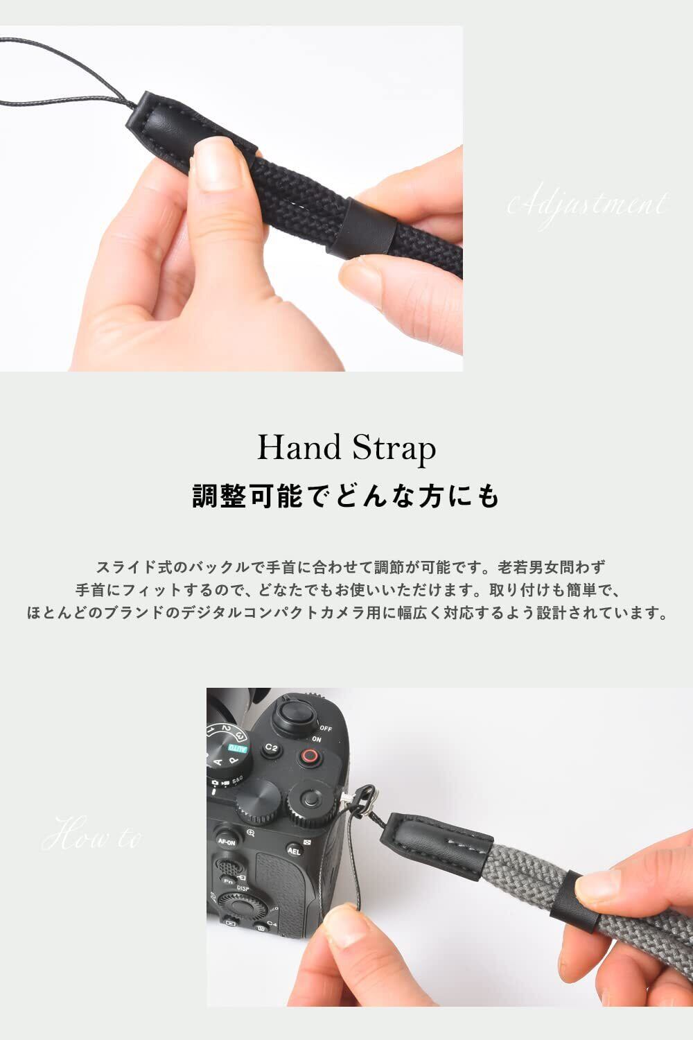 スライド式のバックルがあり、手首に合わせて調節が可能になります。老若男女問わず手首にフィットするので、どなたでもお使いいただけます。取り付けも簡単で、小さな穴を持つほとんどのブランドのデジタルコンパクトカメラ用に設計されています。幅広く対応しておりますので、ぜひこの機会にお試しください