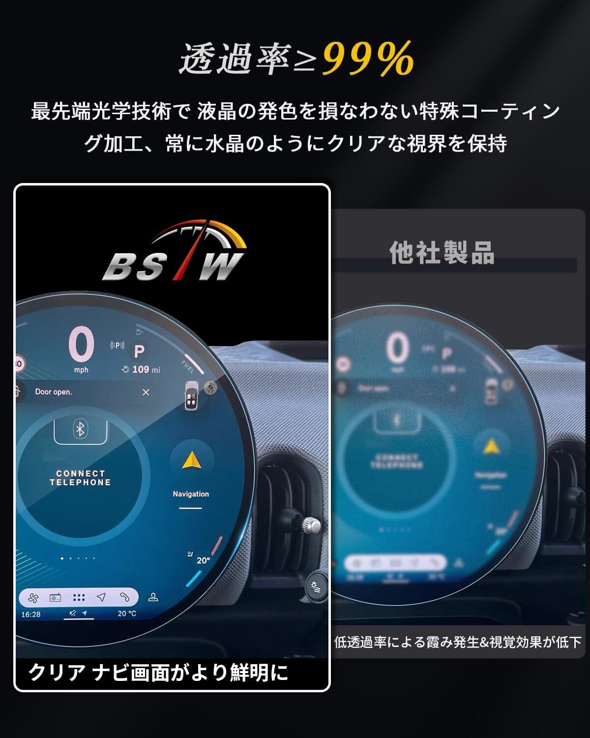 【99%高透過率|運転中の視認性革命】高透過光学素材を採用し、画面の超精細画質を忠実に再現。色の損失を大幅に低減するとともに、反射を効果的に抑制。強い太陽光下でも鮮明に視認可能で、助手席の方がナビを確認する際も、体を傾けることなく楽にご覧いただけます。