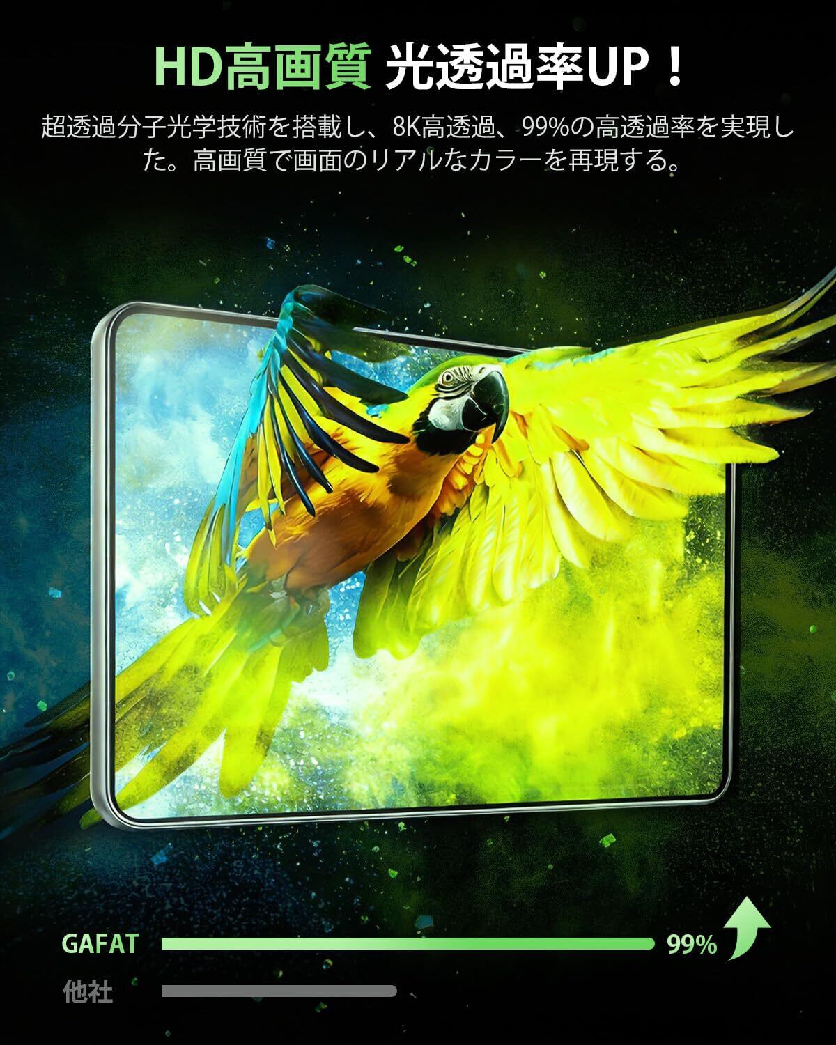 【指紋防止・抗菌】ロータス効果の原理を使って、指紋防止、疎油性と撥水性の加工を行いました。指が触れてスクリーンに指紋を残しにくく、油汚れも発生しないし、清潔しやすい、ずっとスクリーンの美観を維持します。また、抗菌機能も加わり、画面の表面に残っている病原菌を効果的に減らし、健康を保つことができます